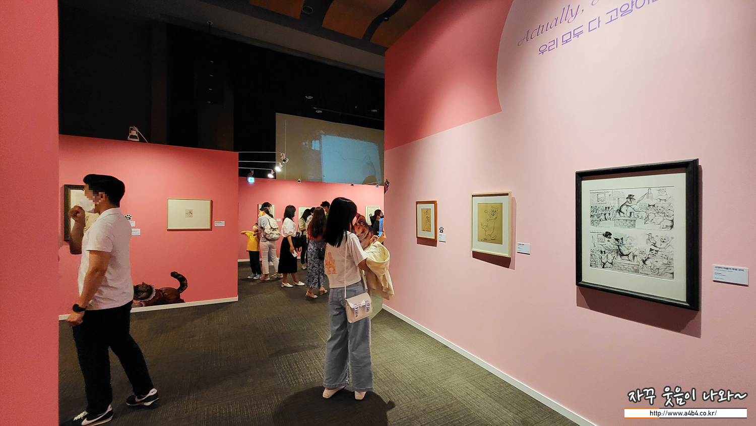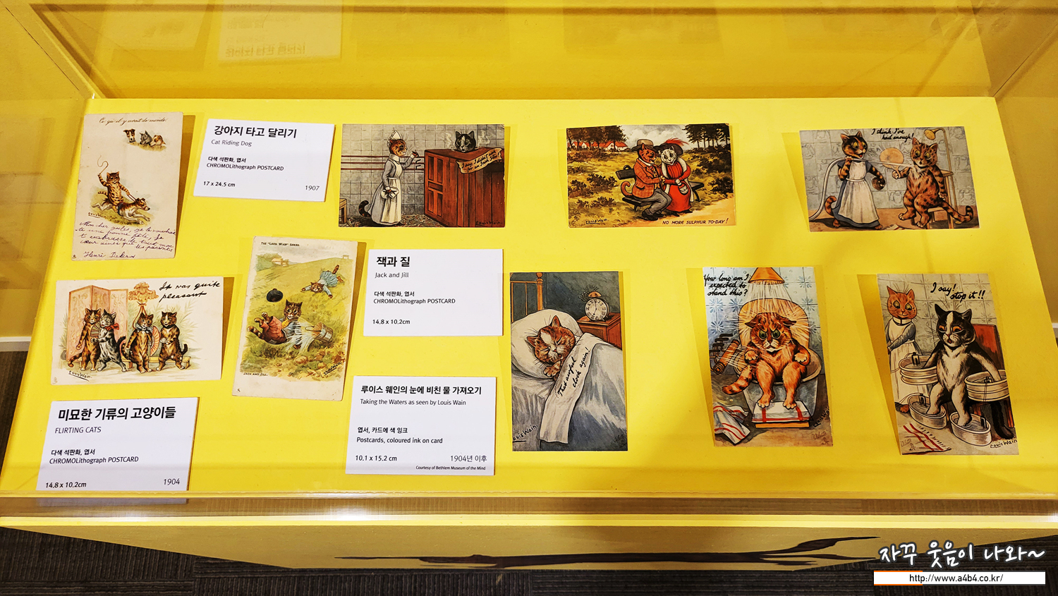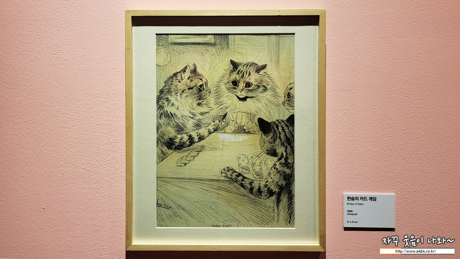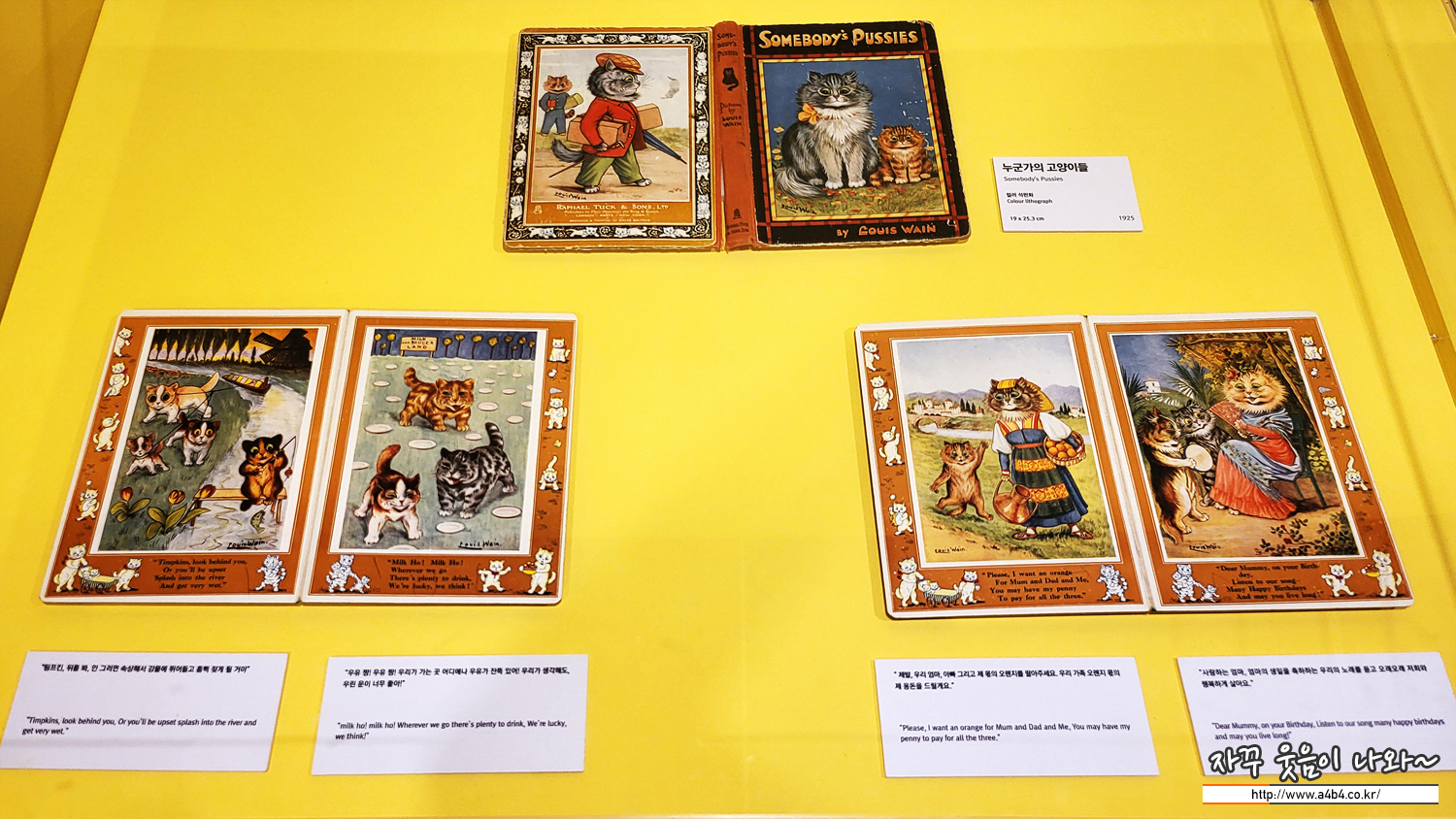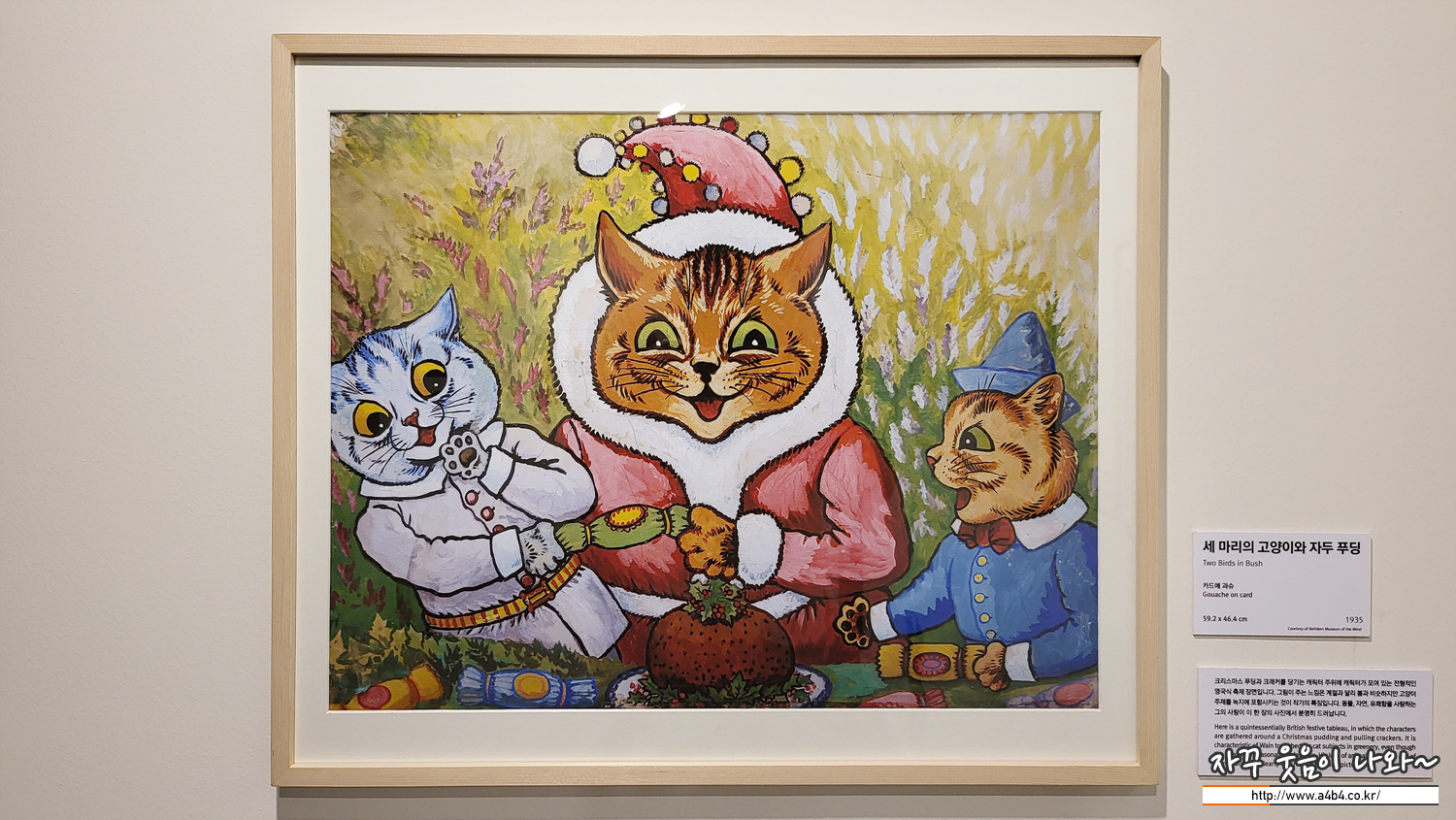 전시장 중간에 위치한 포토존, 루이스 웨인의 귀여운 세 마리 고양이 그림과 함께 사진 촬영이 가능합니다.