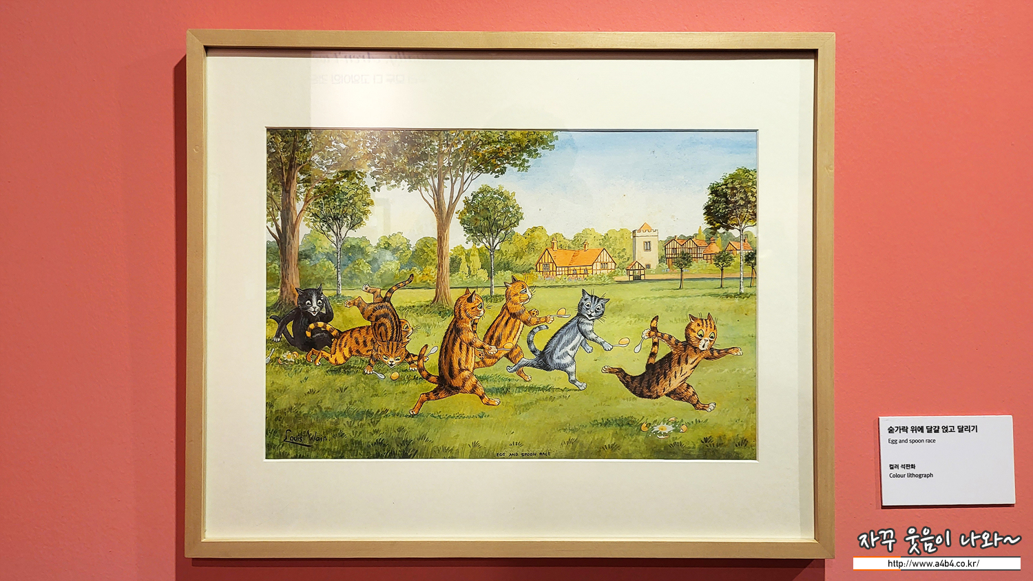 이러한 의인화된 고양이 작품을 통해 루이스 웨인은 명성을 얻게 되고, 고양이 그림만을 그리며 고양이 활동을 같이 하게 됩니다. 이후 가족과 재회하고 작품활동을 하는데요. 이번 루이스 웨인전에서도 이 작품들을 만나볼 수 있습니다.