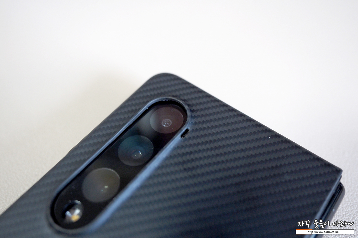 z폴드3 후면 카메라에 부착한 모습입니다. 두께가 좀 있네요.