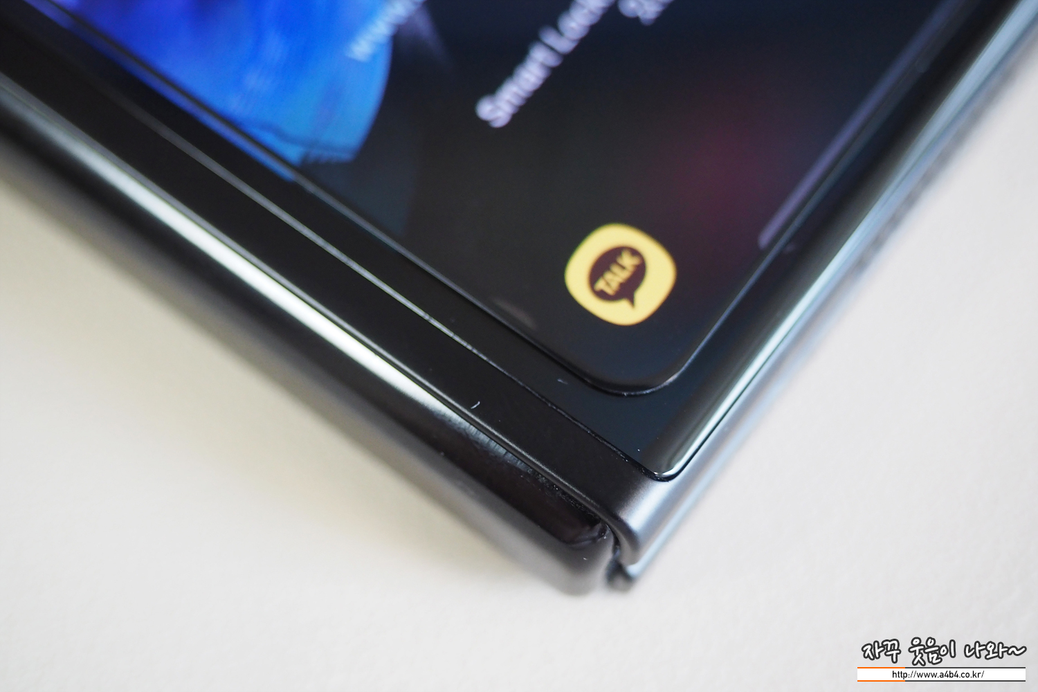 위와 아래의 사진은 오늘 리뷰하는 케이맥스 방탄유리를 디스플레이 구동부분에 맞추어 접착 한 후 상하좌우 여백부위가 발생한 면적을 보여줍니다.기대보다. 보호되지 못하고 노출되는 부분이 상당히 많네요.