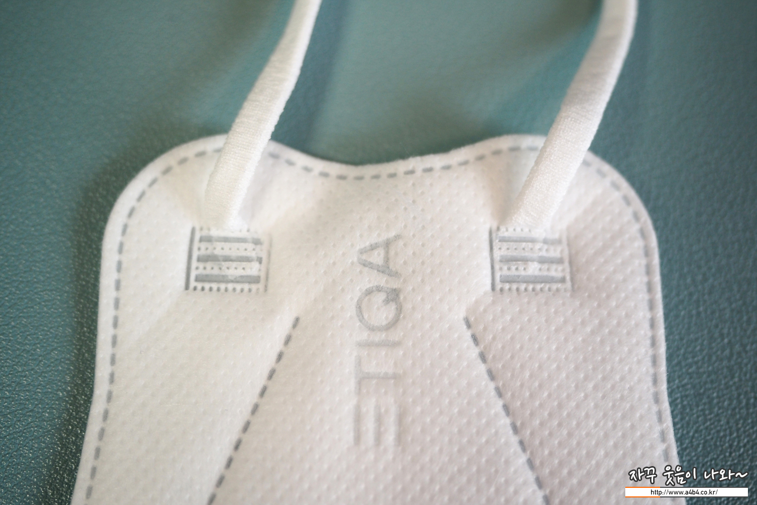 마스크 전면에는 브랜드명인 ETIQA가 음각되어 있으며, 반대 쪽에는 생산국이 영문으로 표시되어 있습니다.