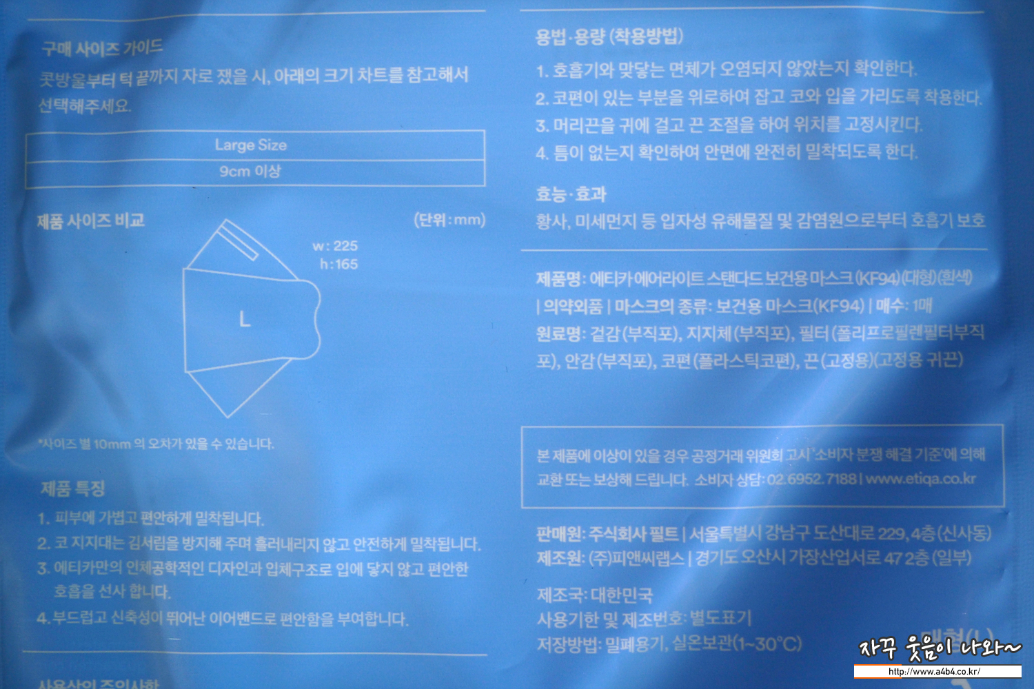 오늘 리뷰한 에티카 에어라이트 마스크 대형은 타사 제품보다 큰 사이즈를 보이지만, 사이즈만큼 넉넉한 착용감을 보여주지는 않습니다. 대갈장군이 찾는 빅사이즈 얼큰이 마스크는 아니네요.