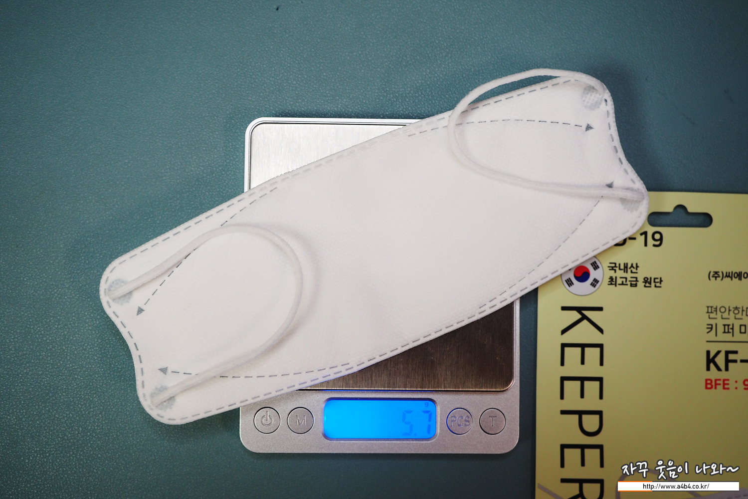 씨에이치세이프키퍼쓰리디방역마스크 대형 무게는 5.7그램으로 약간 무게있는 제품입니다.