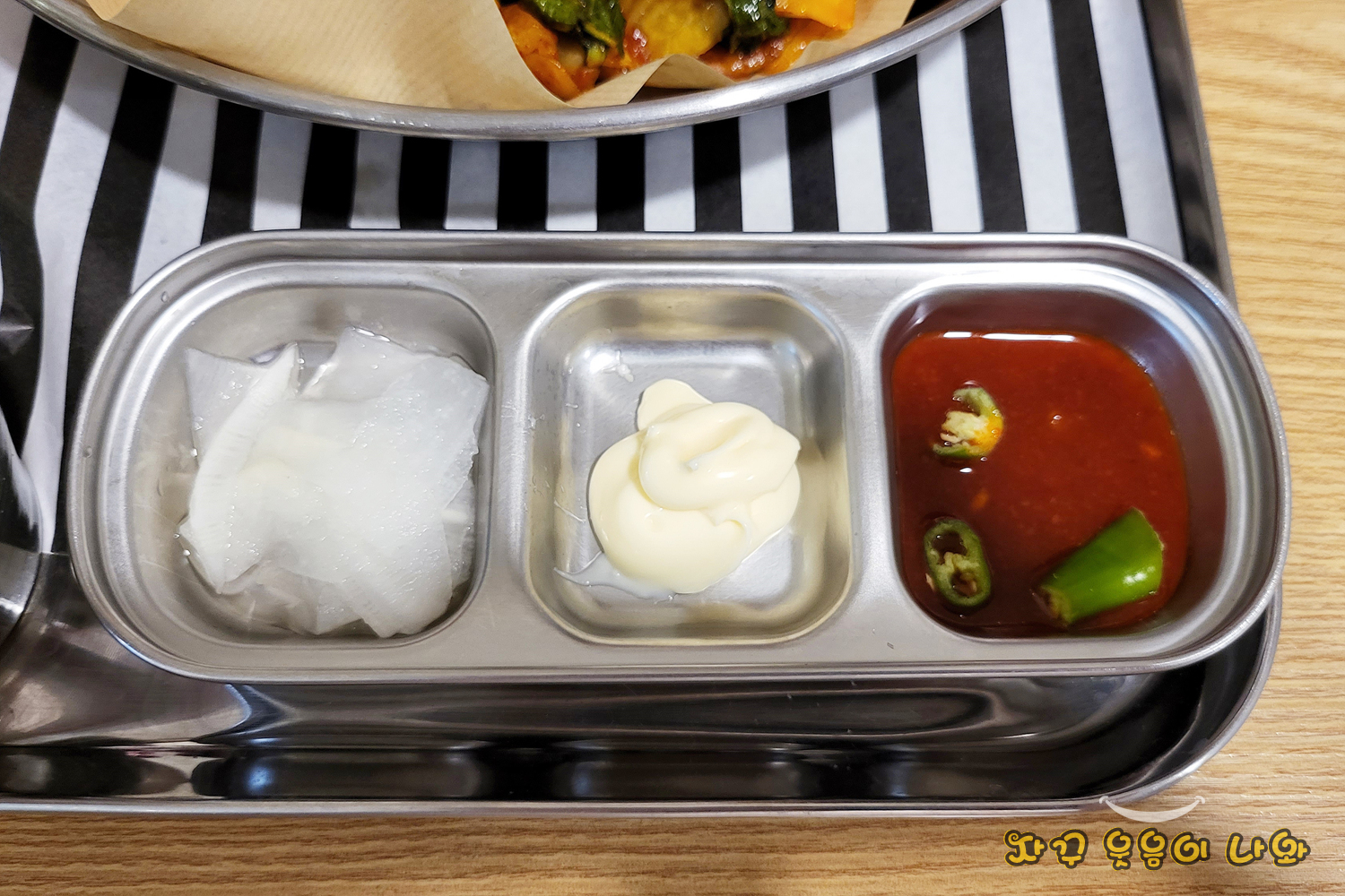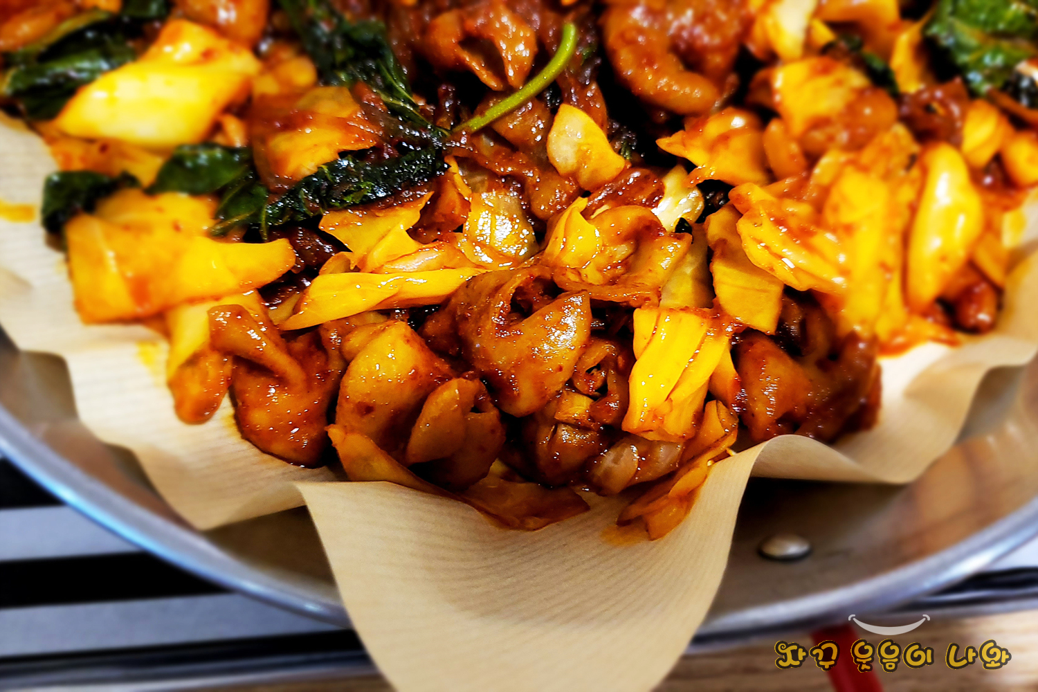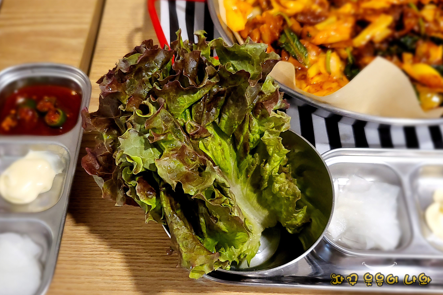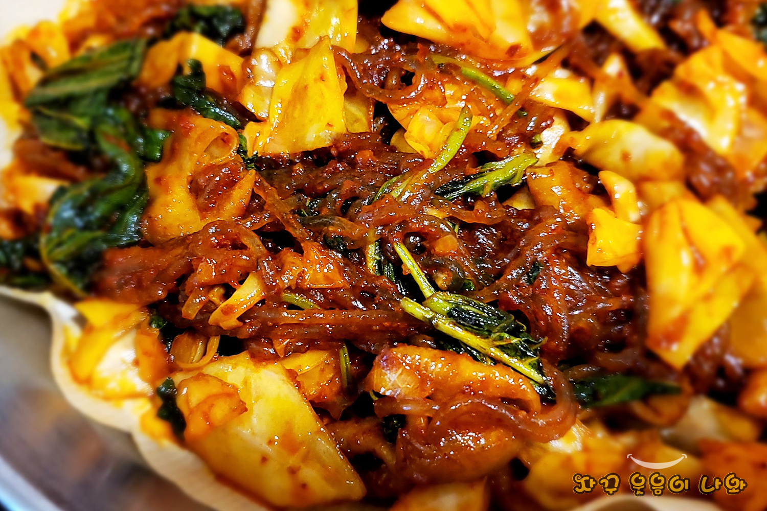 야채곱창이라는 이름에 맞제 양배추와 양파, 깻잎 등 야채들이 푸짐하게 들어 있습니다. (곱창보다 더 많이...)