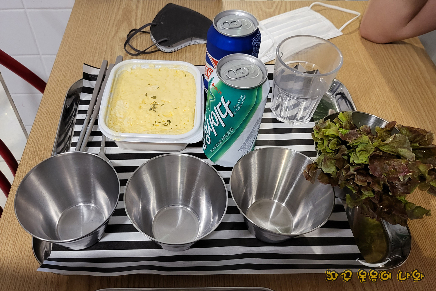 잠실새내역 곱창맛집인 컵앤곱 실내모습입니다. 2인 기준 테이블이 대여섯개 준비되어 있습니다. 식당 식사 보다는 배달중심으로 운영됭는 것 같기도 한데요. 실내는 기존 곱창집에 비해서는 깔끔하고 정돈되어 보입니다.