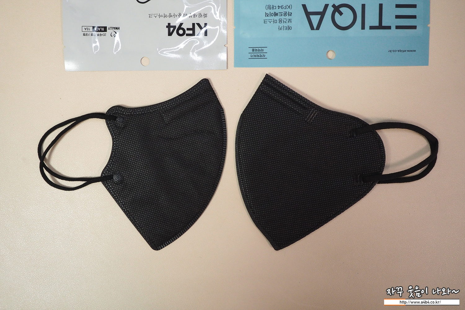 에티카 보건용마스크 라운드베이직 블랙 대형과 발색 비교