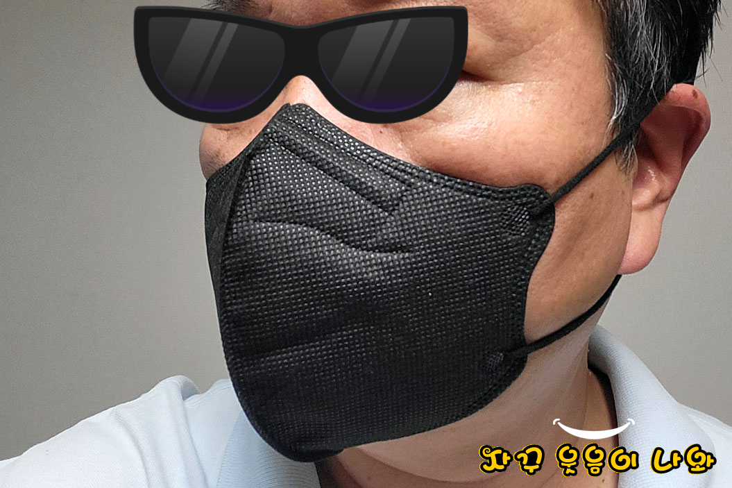 휴릭 조각미남조각미녀 방역마스크 블랙 대형과 발색비교