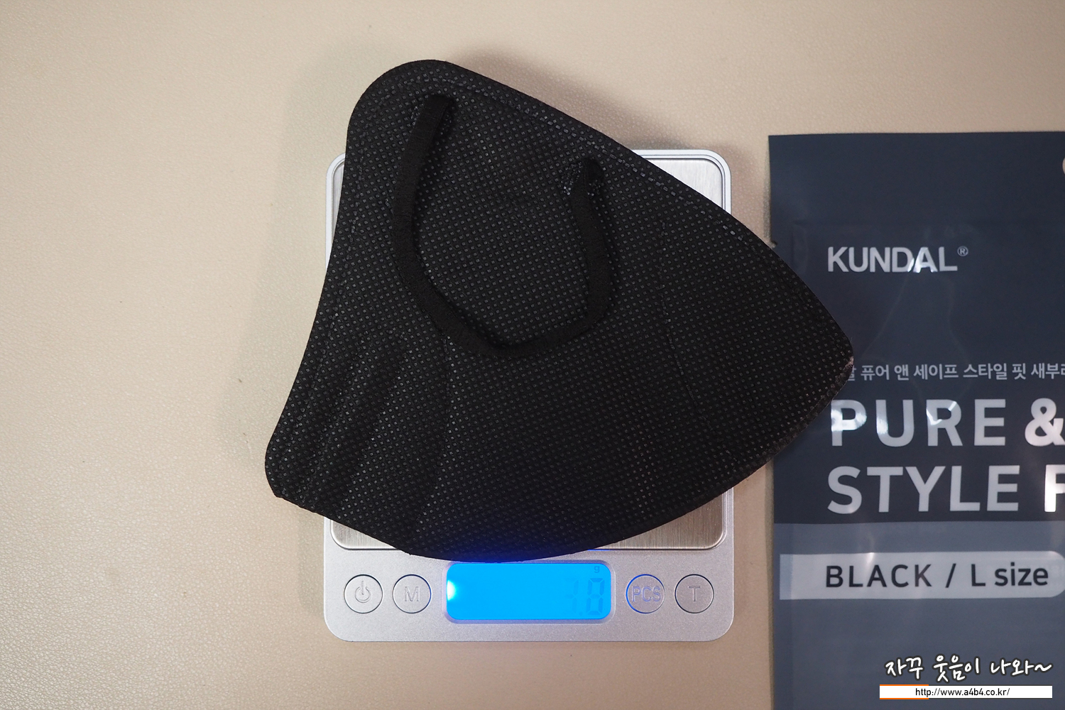 KF94 쿤달마스크 블랙 대형 무게은 3.8g으로 타사 새부리 대형 마스크 대비 약간 가벼운 무게를 보여줍니다.
