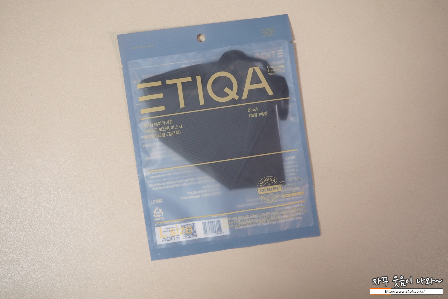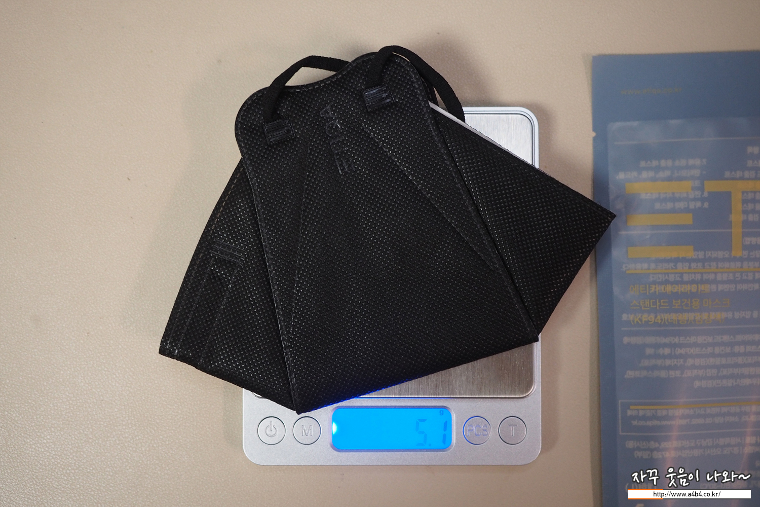 KF94 에티카 에어라이트 스탠다드 마스크 블랙 무게는 5.1g으로 약감의 무게가 있습니다.