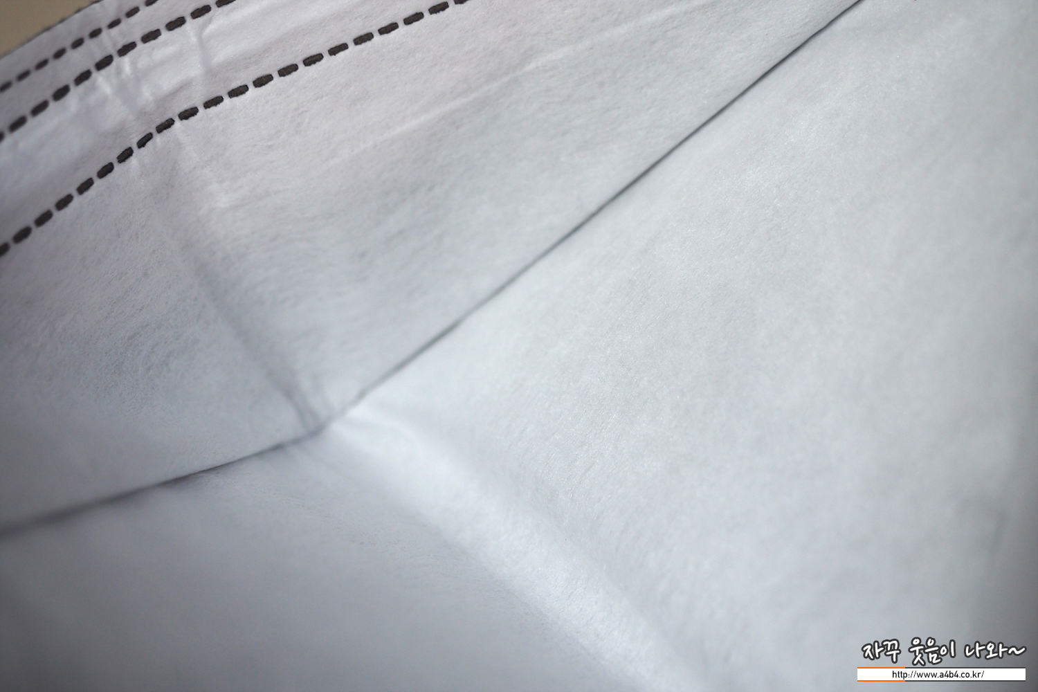 에티카 에어라이트 스탠다드 마스크 대형 내피는 매끄러운 감촉의 부직포가 적용되었습니다. 하루종일 사용해도 내피에 보푸라기는 생기지 않으며, 가렵거나 간지러운 피부트러블도 일어나지 않았습니다.