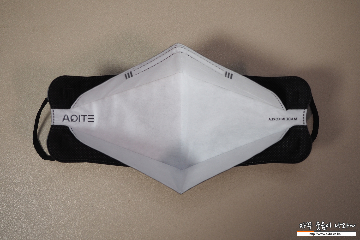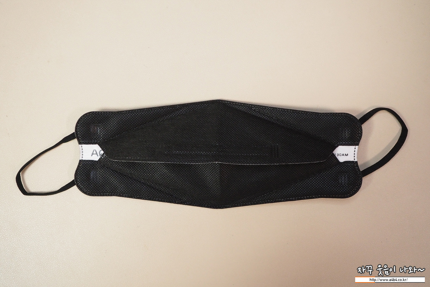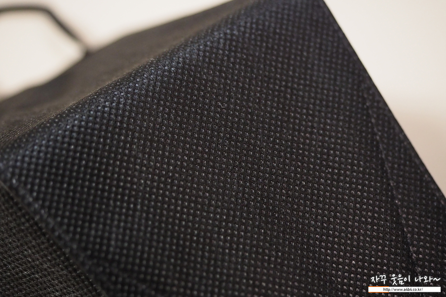 에티카 에어라이트 스탠다드 마스크 블랙 외피는 패턴 처리된 매끄러운 감촉의 부직포가 적용되었습니다. 반 유광 블랙컬러를 보이며, 환경에 따라 약간의 발색 변화가 생기는 제품입니다. 일반적인 두께로 하드한 타입의 제품으로 착용핏은 안정적으로 잘 나오는 마스크입니다.