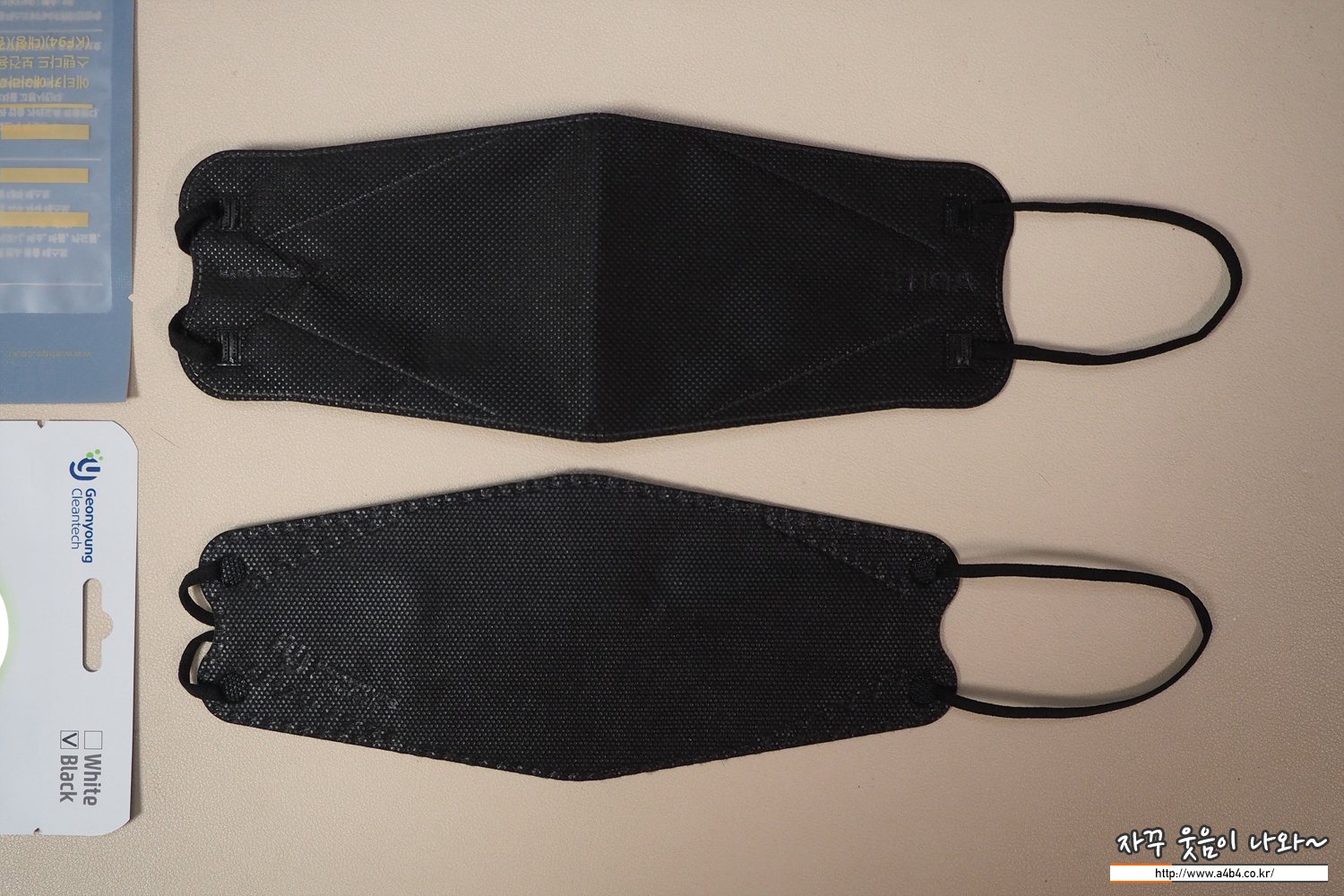 건영클린텍 건영삼단접이마스크 블랙 대형과 발색 비교