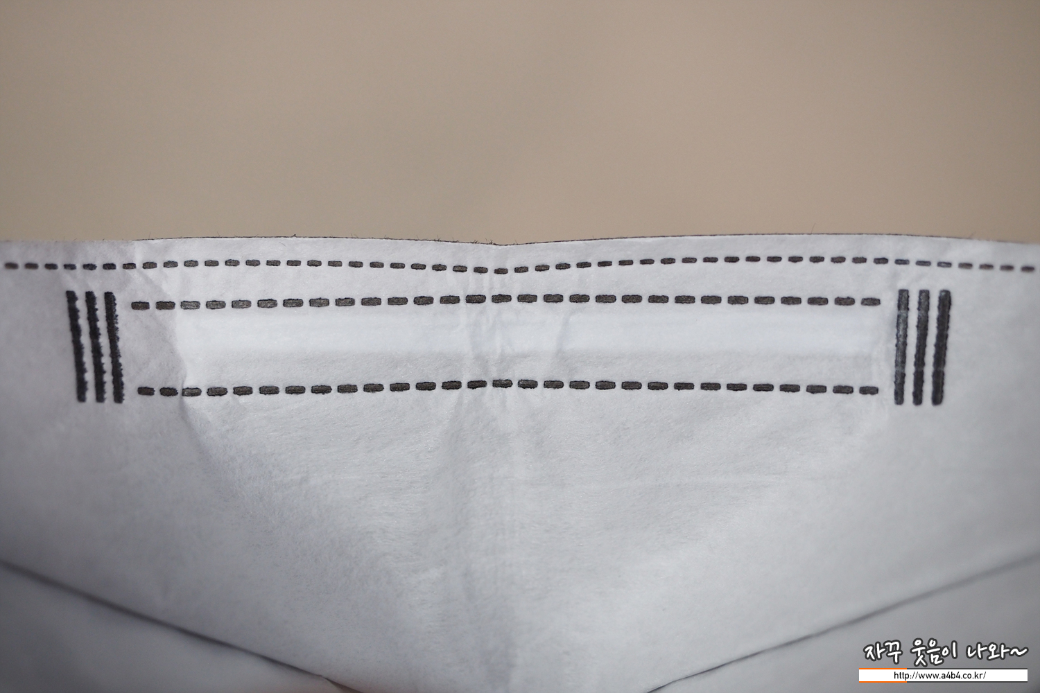 프리미엄 고급형 마스크인 '에티카'라는 브랜드에 어울리지 않게 오늘 리뷰하는 에티카 에어라이트 마스크 마감은 상당히 실망입니다. 사진과 같이 사용 전(위사진) 부터 마스크 중앙 접히는 부분의 색상이 벗겨저 있네요.