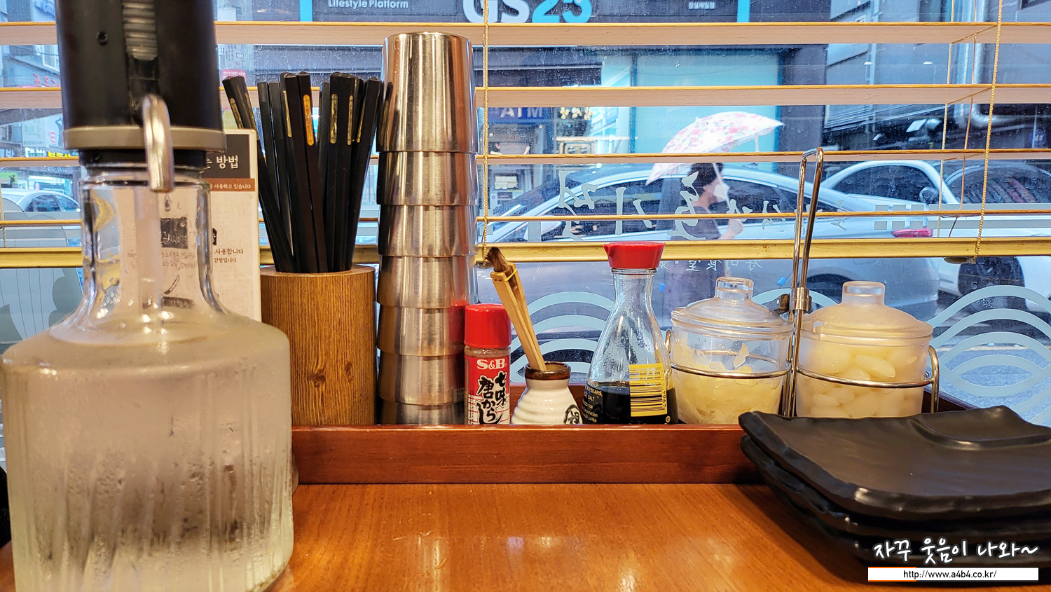 락교와 초생강은 테이블에 있어서 편하게 덜어서 먹을 수 있습니다.