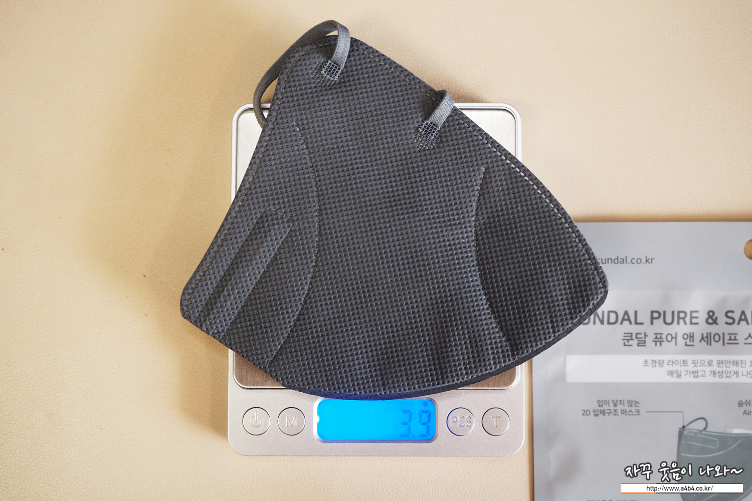 쿤달 마스크 그레이컬러 대형 무게는 3.9g으로 타사 대형사이즈 마스크에 비해 약간 가벼운 무게를 보이네요.