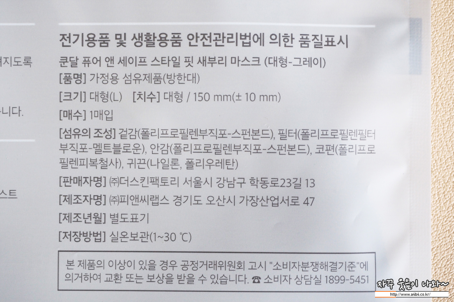 저자극 다양한 향의 욕실용품으로 알려진 쿤달 브랜드의 새부리마스크 사용후기입니다. 저도 쿤달 욕실용품을 사용하고 있어 기대되는 제품입니다. [1/3] 마스크 정보 및 디자인 식품의약품안전