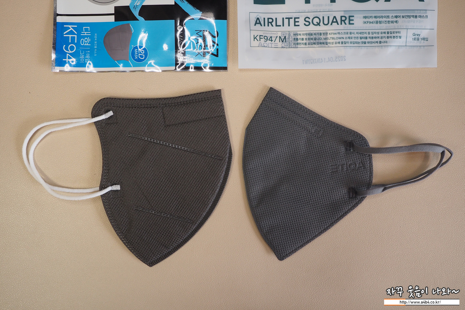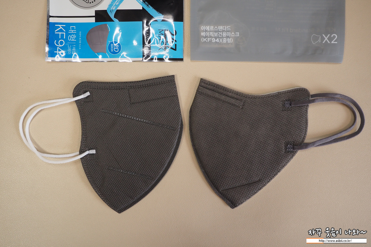 원형의 귀걸이끈이 마스크 앞부분에 부착된 아이키마스크는 대부분의 그레이컬러 마스크의 귀걸이끈이 부직포색상에 맞추거나 검정색인 반면 흰색 귀걸이끈이 사용되었습니다. 이 부분은 개인적인 호불호가 있어 보이네요.