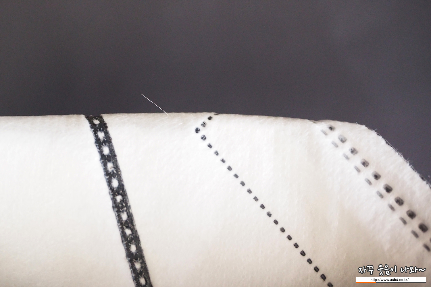 아래 사진과 같이 마스크 안감에 약간의 보풀이 보입니다만, 몇 시간 착용하는 동안에 얼굴이 가렵거나 간지러운 피부 트러블은 없었습니다.