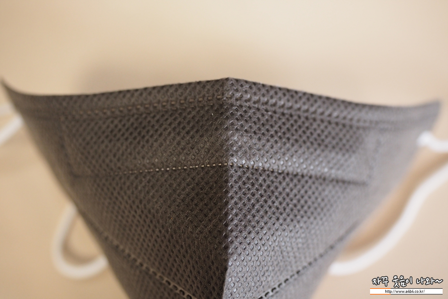 247 컬러 마스크 겉감은 도트 처리된 반유광 그레이 컬러 발색을 보입니다. 회색 컬러마스크 중에서는 다소 진한 색상을 보여주면 약간 유광 발색을 보이는 타입입니다. 마스크 염색상태는 얼룩 없이 깔끔하게 잘 처리되어 있습니다.