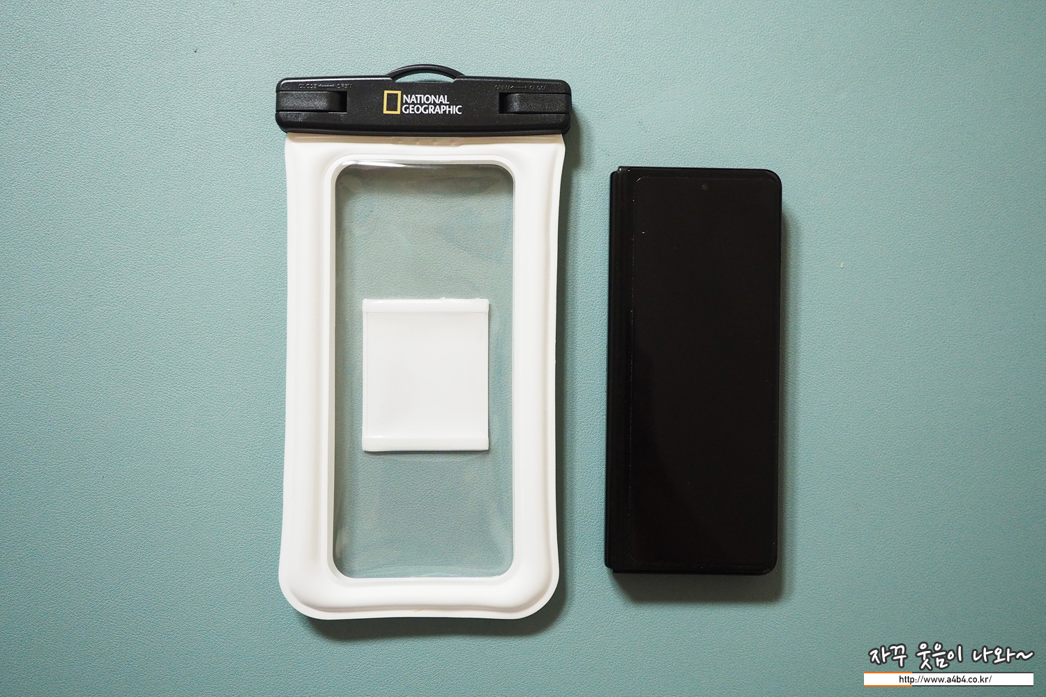 참고로 5년 가까이 사용한 기존 방수팩입니다. 물론 코로나 이후에 워터파크나 물놀이를 하지 못했으니, 실 사용은 10회정도 된 것 같네요. 이번 여름을 맞이하여 집에서 방수 테스트를 했는데 사용에 전혀 문제는 없는 상황이네요. 다만 저의 갤럭시z폴드는 길이가 길어서 들어가지 않네요.