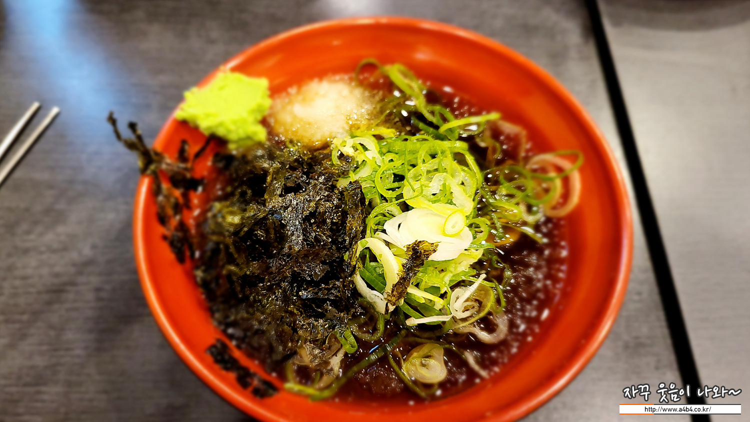 아주 맵지는않고요. 부드러운 모밀국수 식감과 새콤달콤한 양념과 아채가 어울리는 식감과 맛이 좋습니다. 또한 시원한 육수와 함께하니 더웠던 몸과 마음도 같이 시원해 진다고 할까요.