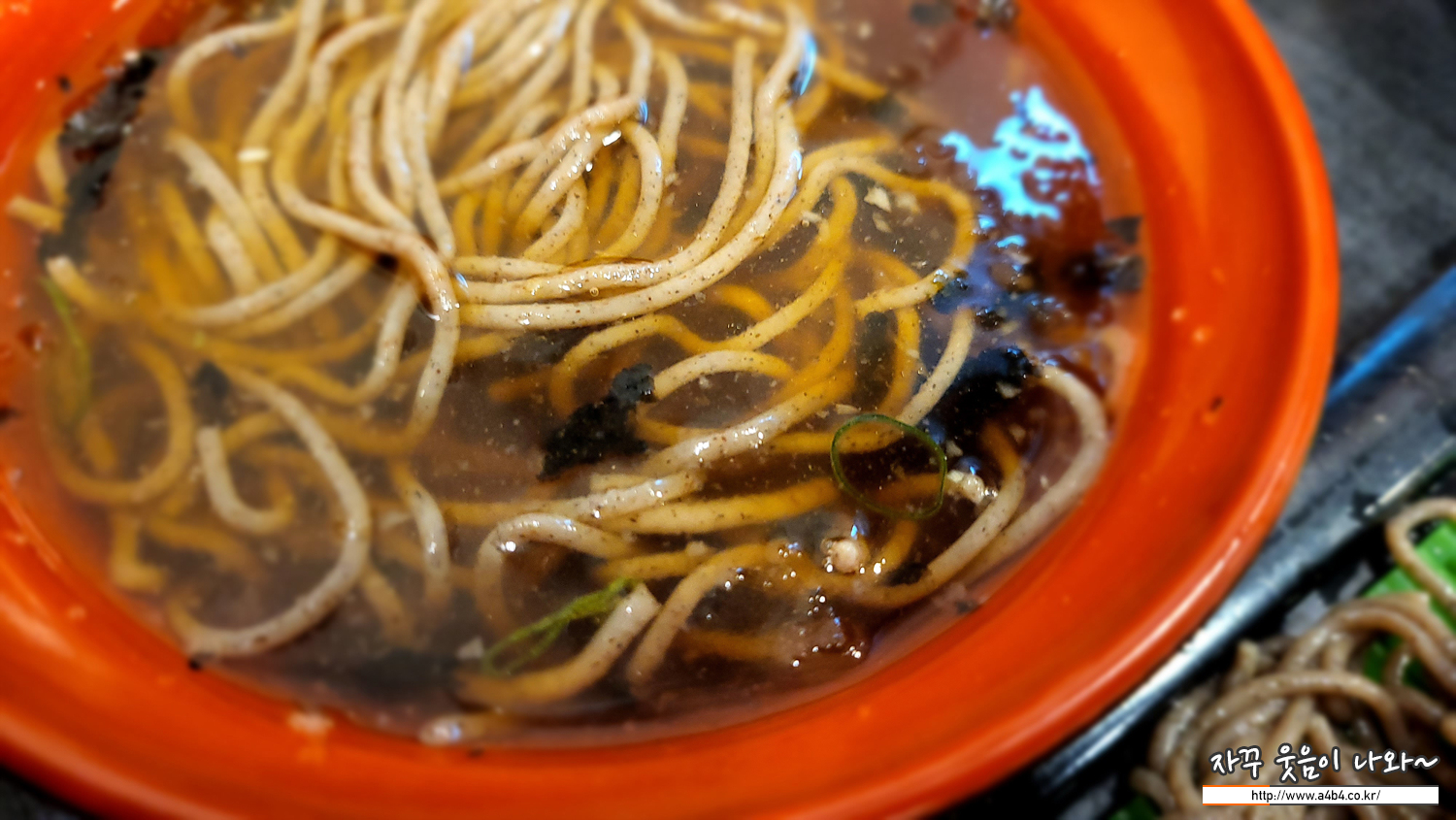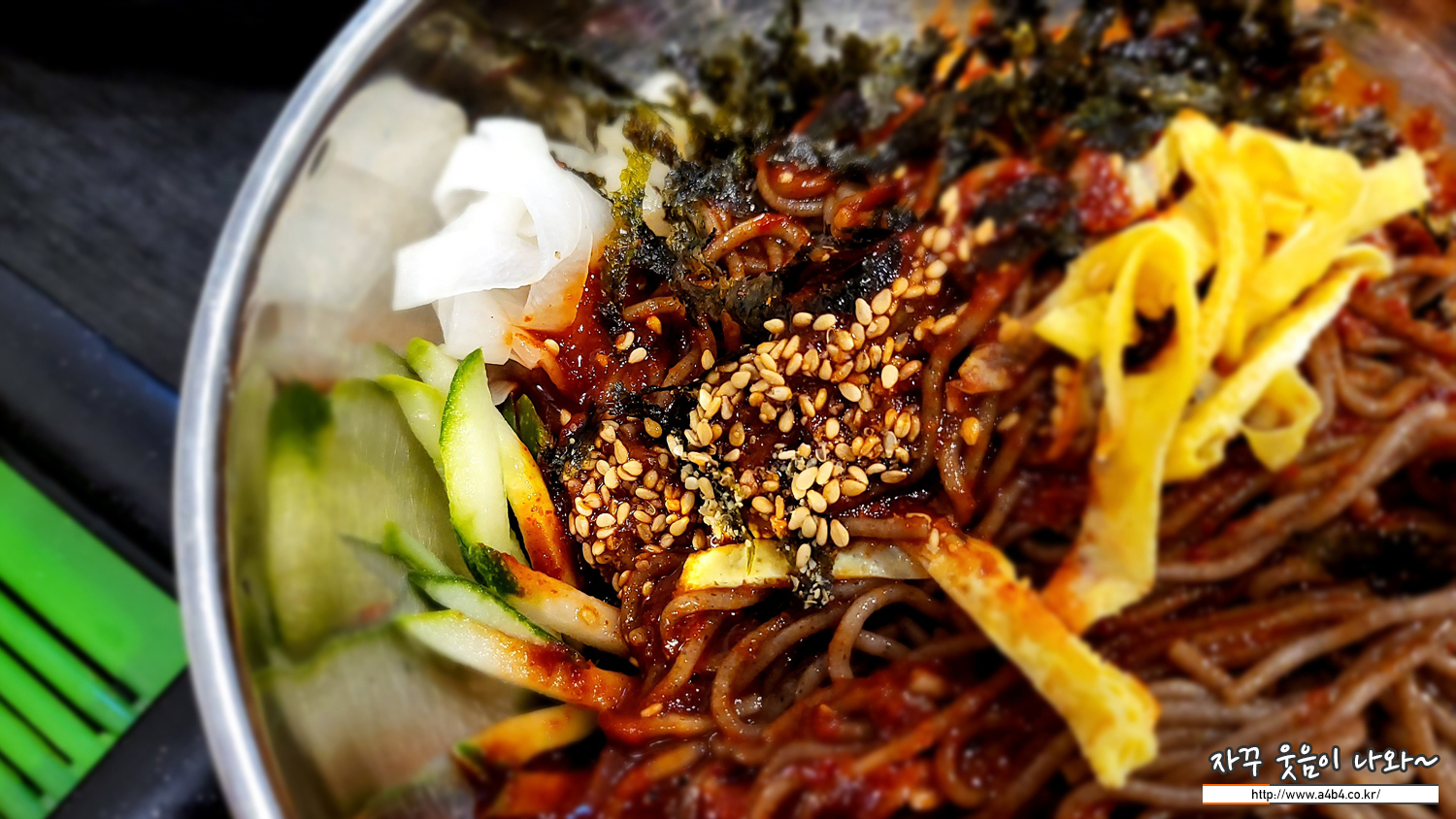 아주 맵지는않고요. 부드러운 모밀국수 식감과 새콤달콤한 양념과 아채가 어울리는 식감과 맛이 좋습니다. 또한 시원한 육수와 함께하니 더웠던 몸과 마음도 같이 시원해 진다고 할까요.