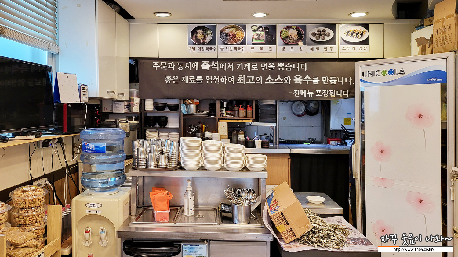 주방앞에는 조금 정리가 안 된것 같은 분위기도 보이네요. 깔끔한 신생 맛집 보다는 오래된 느낌이 있는 올드한 느낌을 주는 곳입니다.