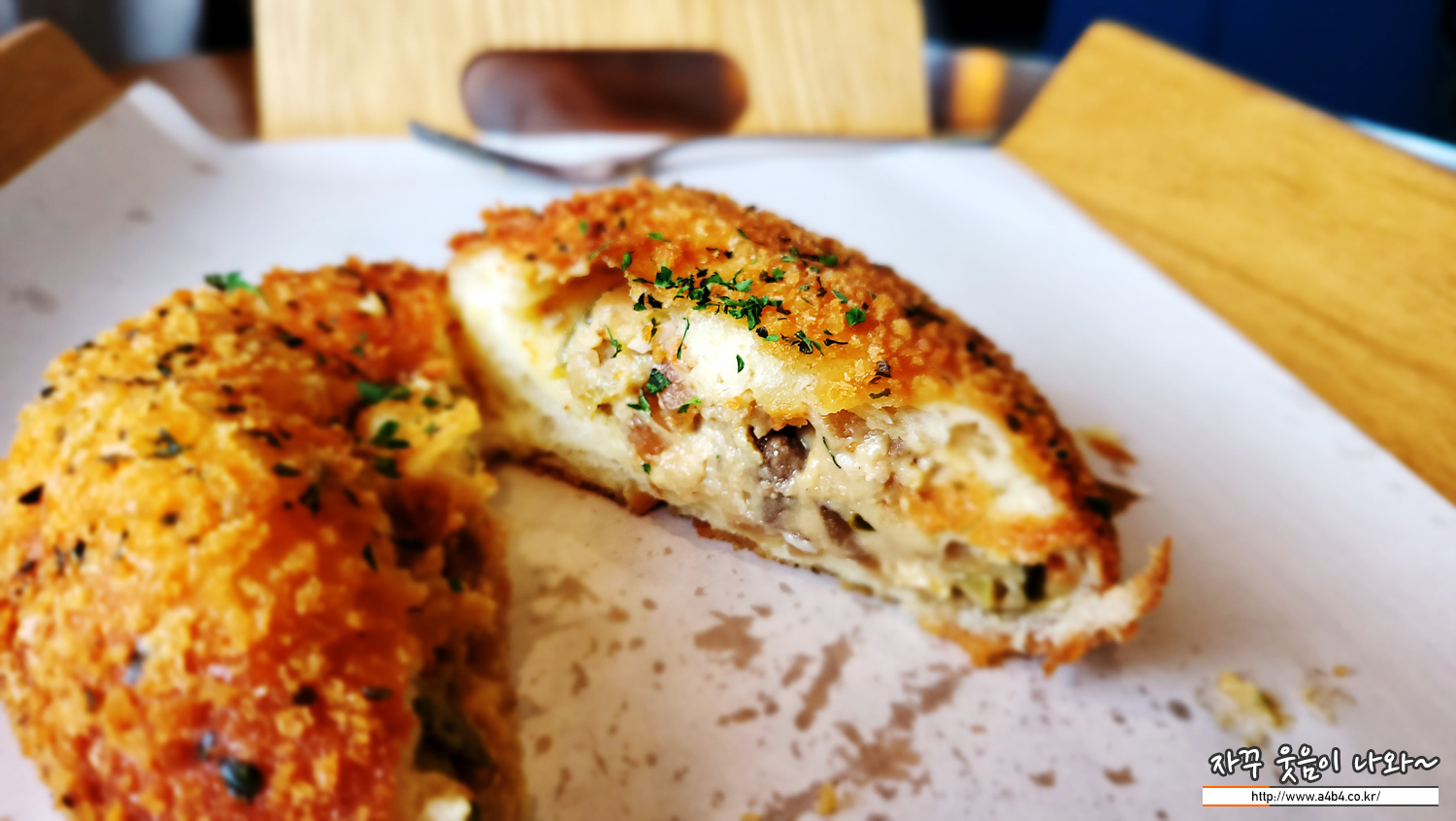 이곳 과천 카페인 프랑스 빵집의 최고 인기메뉴인 '먹물크런치'입니다.