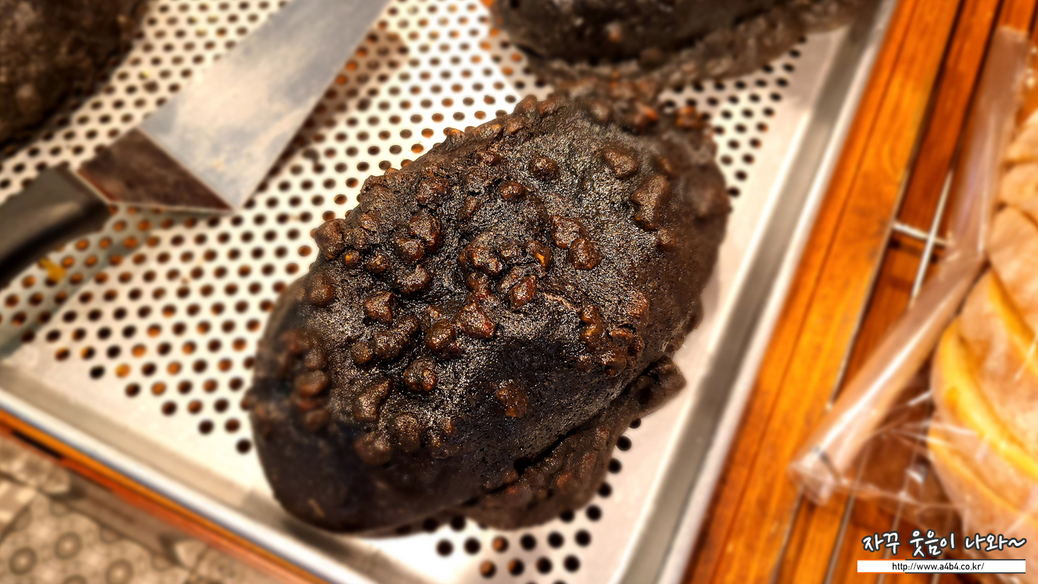 이곳 과천 카페인 프랑스 빵집의 최고 인기메뉴인 '먹물크런치'입니다.