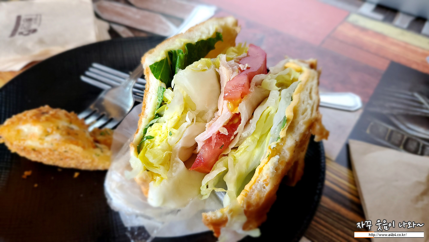 샌드위치는 아채도 많이 들어있고 식감도 좋네요. 아침에 카피 한잔과 함께하기에 좋은...