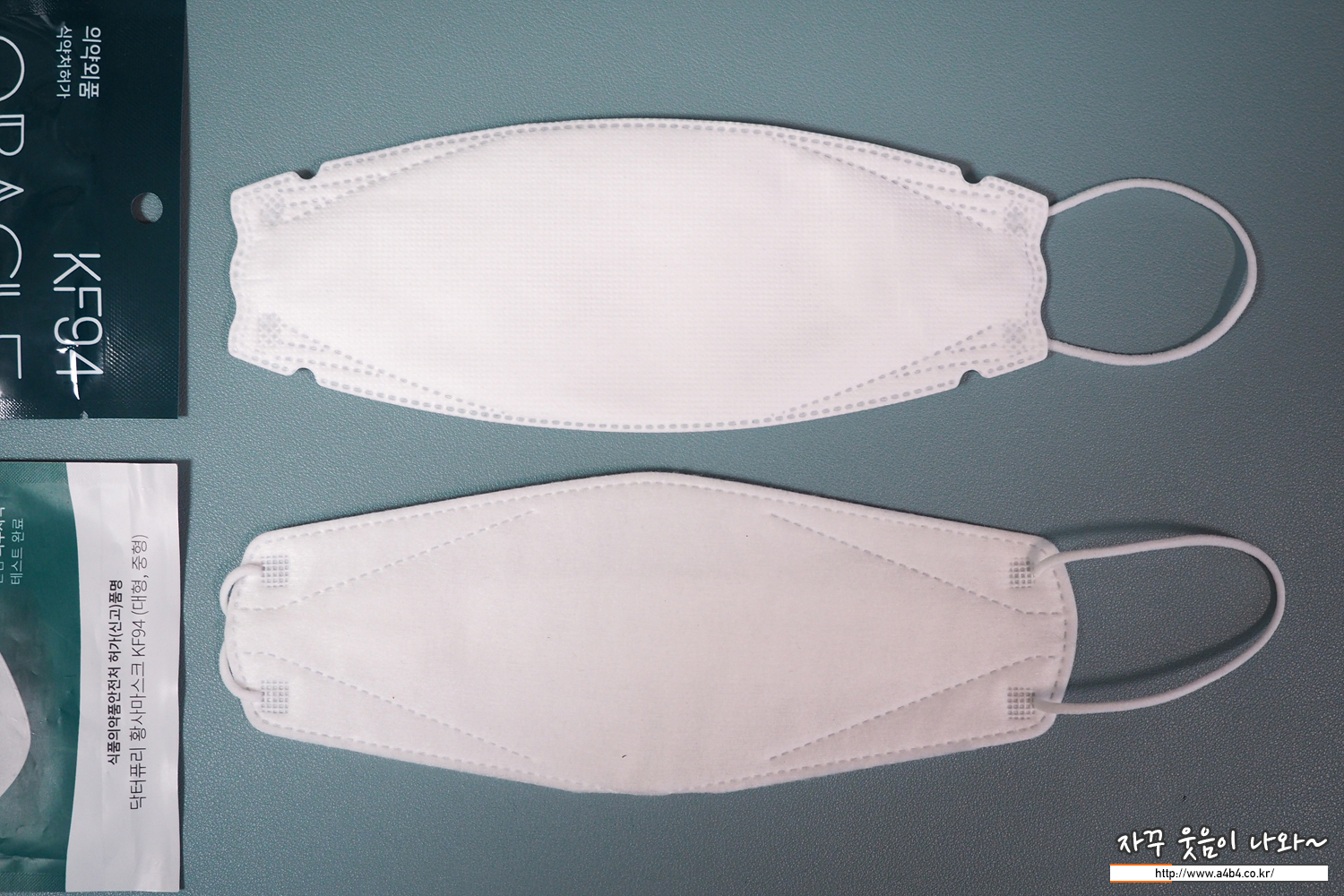 KF94 오라클 마스크 대형은 타사의 보편적인 대형사이즈 마스크 크기를 보여줍니다. 일반 성인분들이 착용하시기에는 무리없어 보이지만 대갈장군인 저에게는 다소 불편한 작은 사이즈를 보이네요.