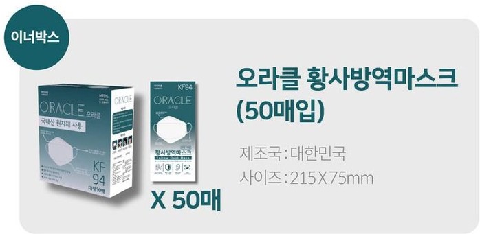 아래는 오늘 리뷰하는 KF94 오라클마스크 정보입니다. 식약처 불량마스크로 등록 이력은 없습니다.