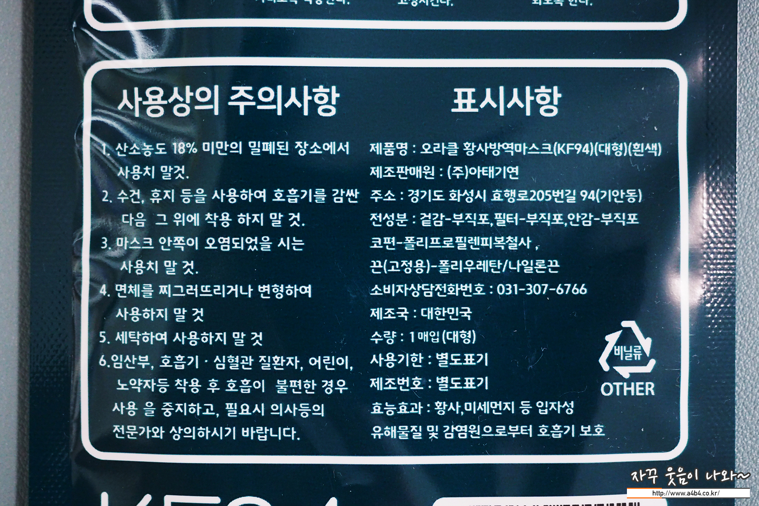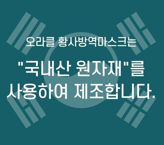 참고로 오라클 마스크에 사용된 원자재는 국내산을 사용한다고 합니다.