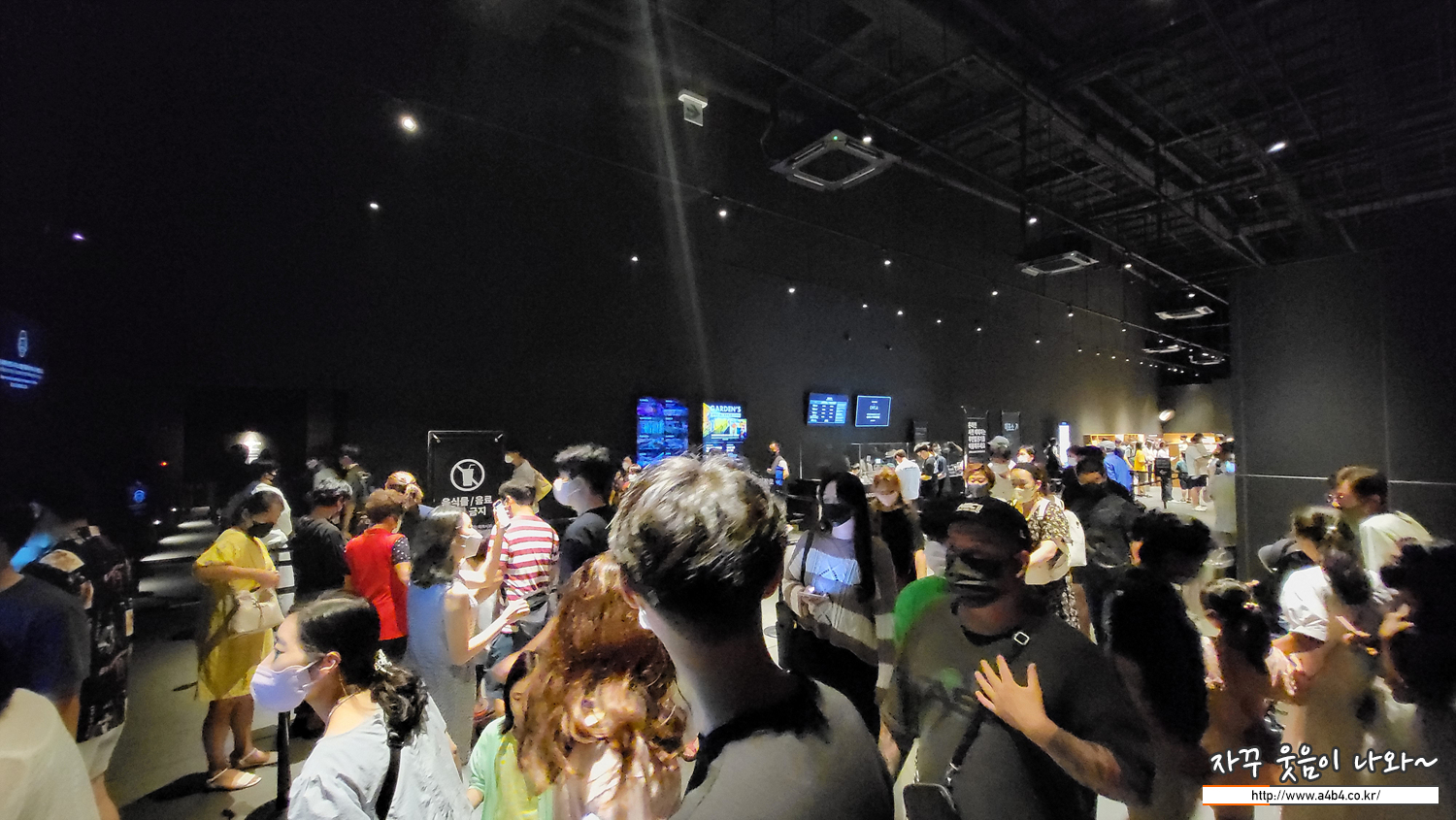 여름휴가를 맞이한 관광객과 단체 관람객, 곳곳에서 중국어도 들이는 상황. 미디어 아트 전시 공간으로 실내는 상당히 어둡네요. 밀실 공포가 있거나, 야맹증이 있으신 분들에게는 추천 드리지 못하겠네요.