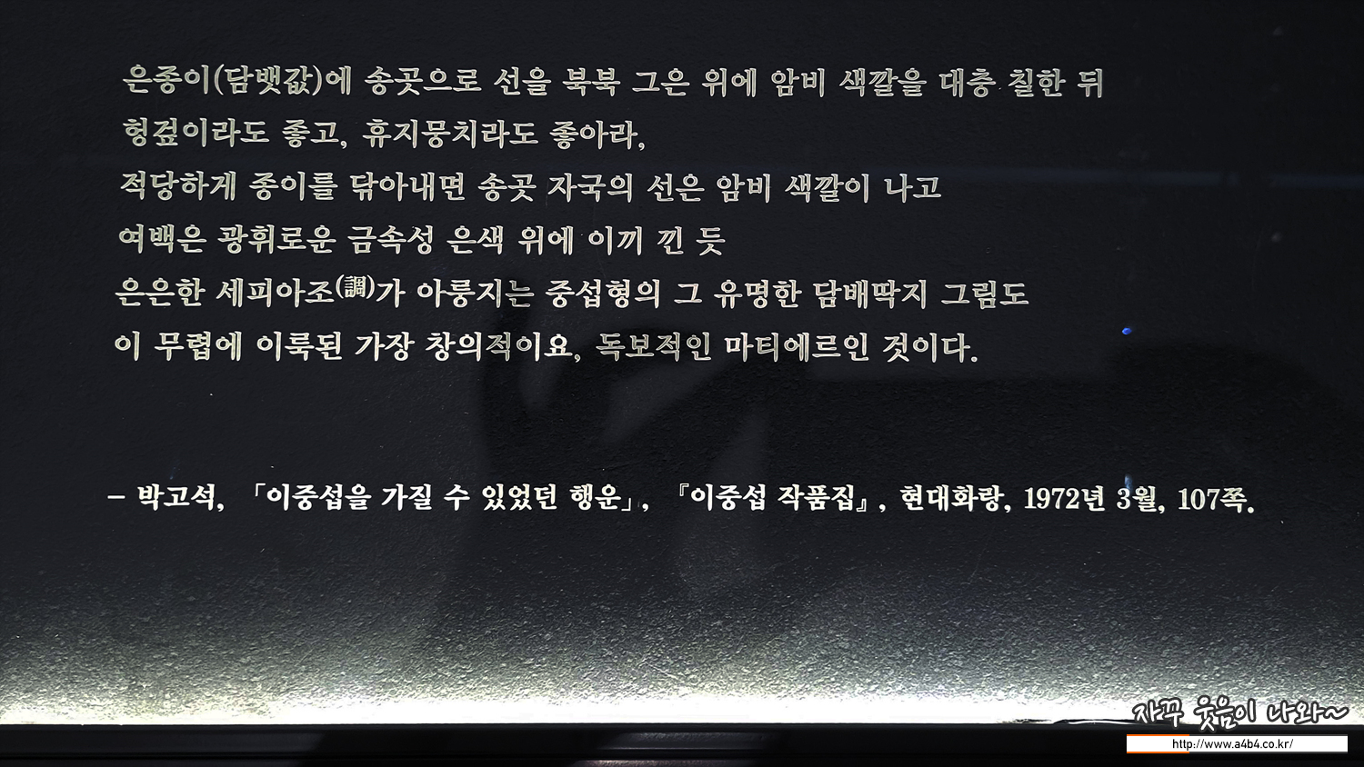 이번 국립현대미술관 이건희 특별전 '이중섭' 전시회장의 은지화 섹션에서 많은 시간을 보냈네요.