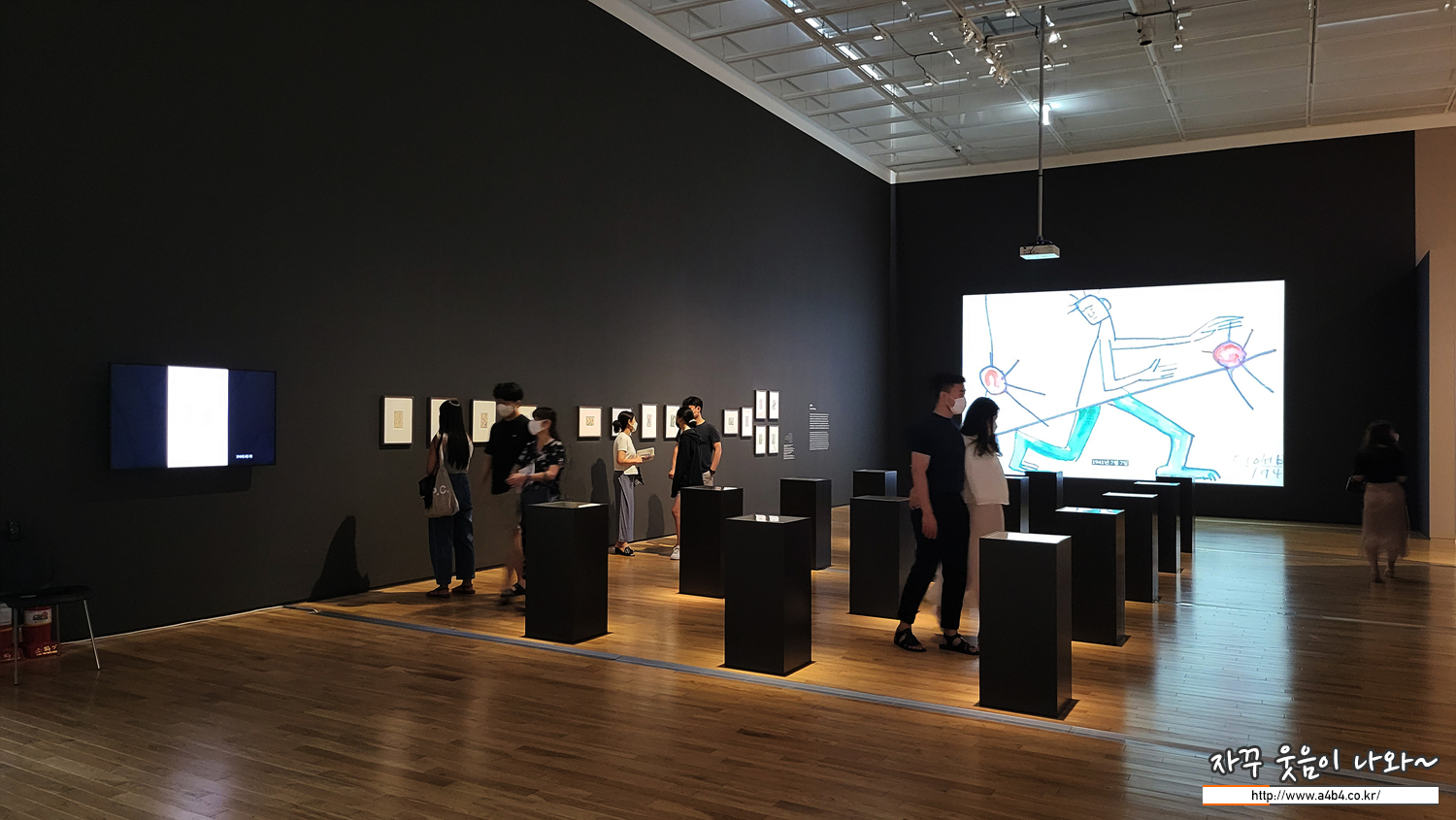 이번 전시회 또한 한 시간 단위로 예약자대상 입장이 진행되는데요. 바로 앞에서 입장하기 보다는 입장시간 조금 지나 입장하시면 좀 더 편한하게 관람이 가능합니다. 아래 사진 왼쪽은 정각에 입장한 공간, 오른쪽은 입장후 30분 후에 다시온 공간입니다. 이 시간부터 관람하시면 쾌적하게 이중섭 전시회 관람이 가능합니다.