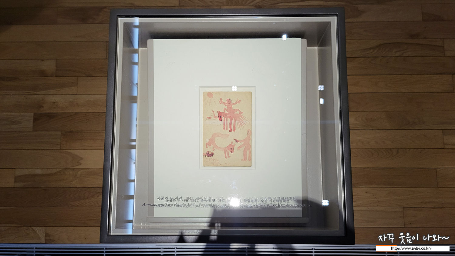 이렇게 이건희 회장이 수집한 40여점의 이중섭 엽서화가 한 장 한장 전시되어 있습니다. 누구에게 메시지와 함께 보낸 그의 그림들... 현재 그의 작품을 이렇게 많은 사람들이 보게 될것을 알고 있었을까요?