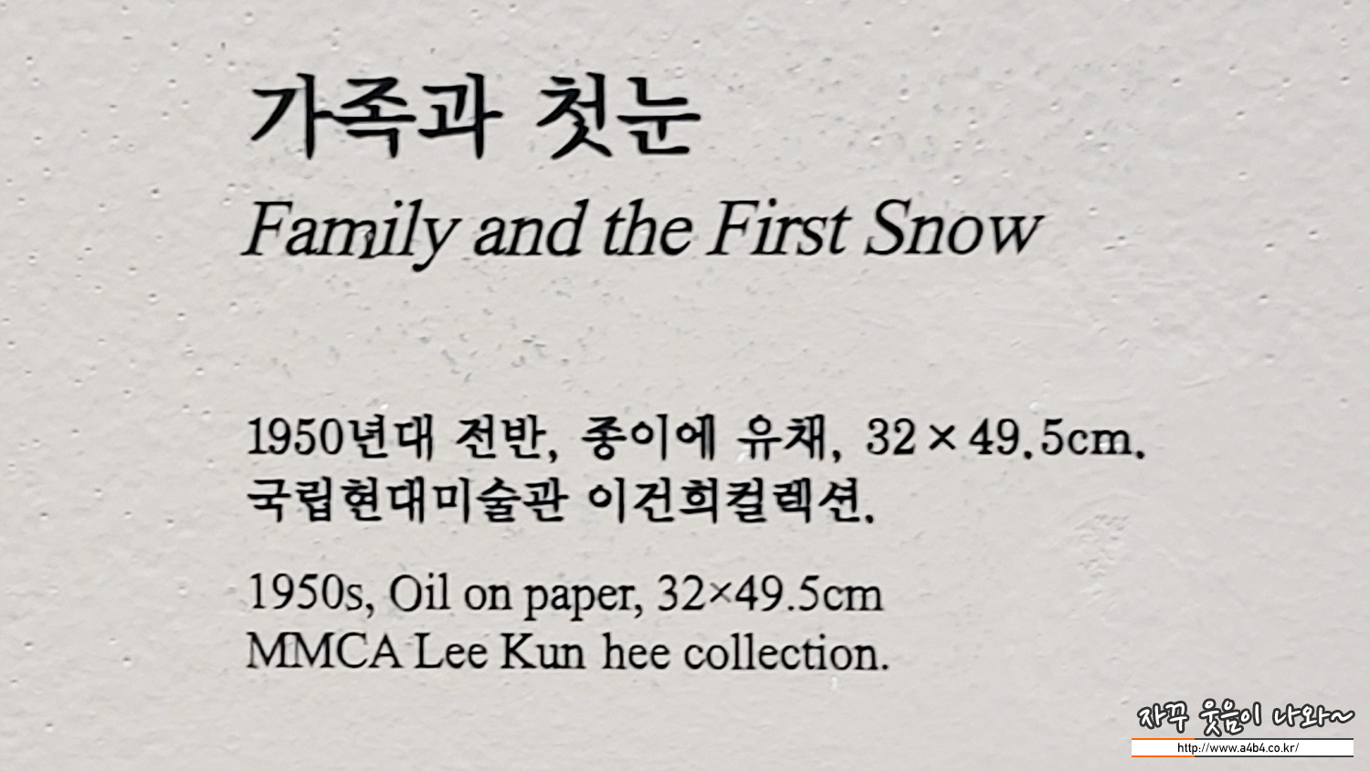 가난하지만 행복한 제주도 피난 생활을 이어가게 됩니다. 이 시기 이중섭은 상대적으로 많은 수의 드로잉과 작품을 남겼습니다. 그 중 ‹가족과 첫눈›은 상대적으로 이른 시기에 제작된 작품으로 추정됩니다.