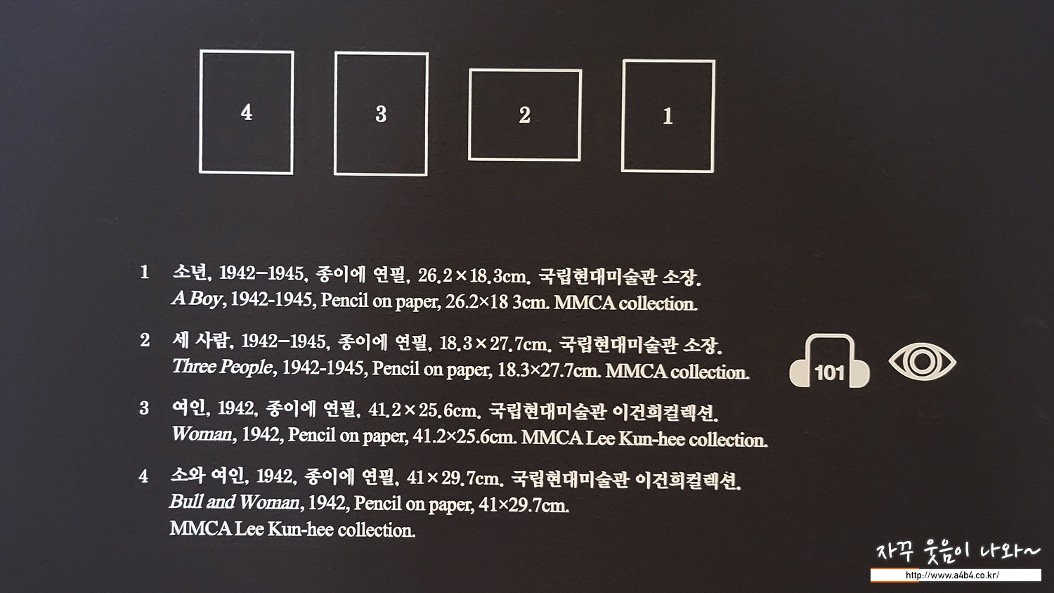 국립현대미술고나 이건의 컬렉션 특별전 오디오 가이드는 무료로 제공됩니다. 별도 앱 다운로드도 없이 모바일웹에서도 득기가 가능하네요.