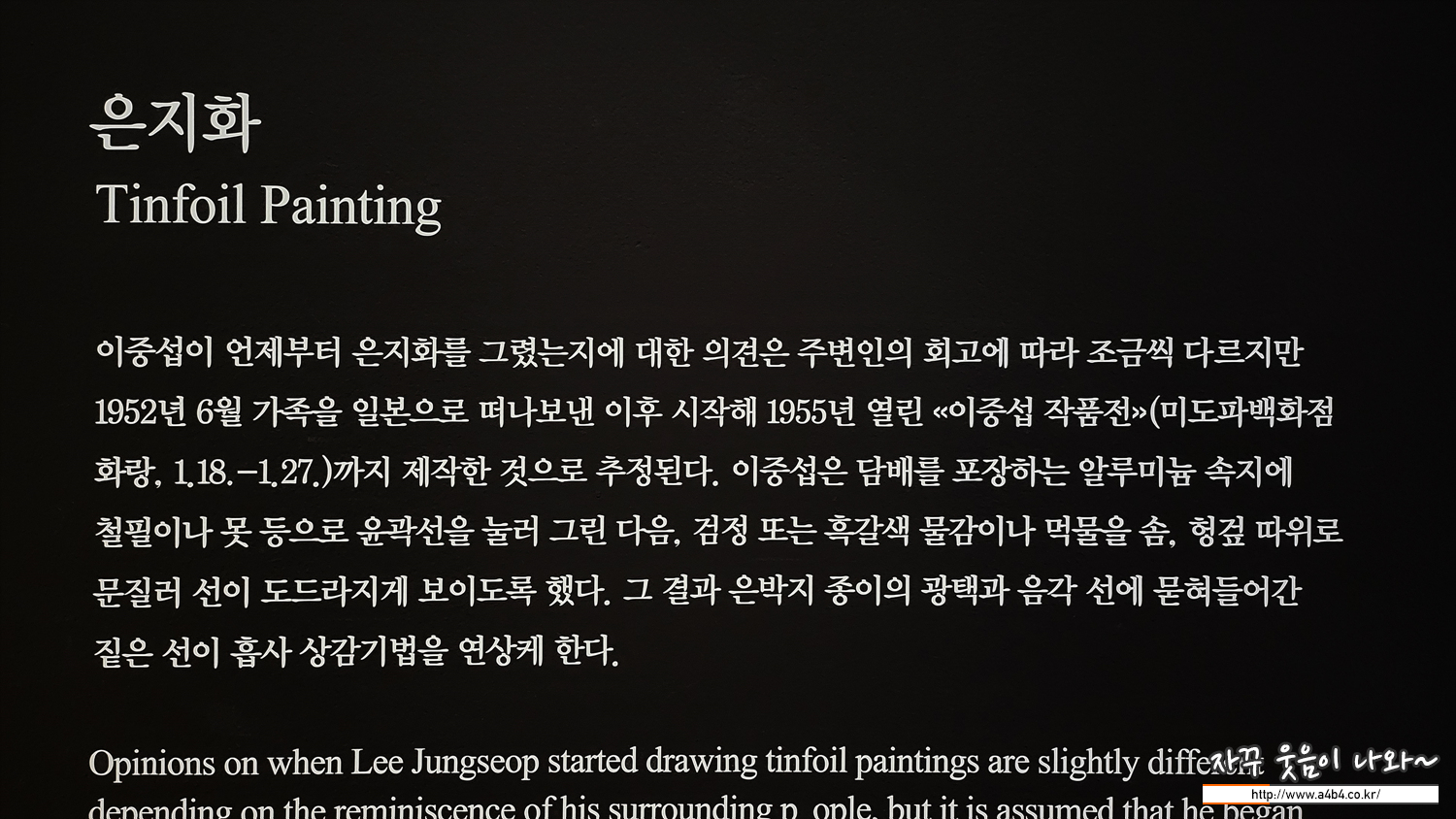 당시 이중섭은 다방이나 술집, 심지어는 길바닥과 쓰레기통에서 담뱃갑을 주워 그 안에 든 은박지를 사용했다고 하는데요,