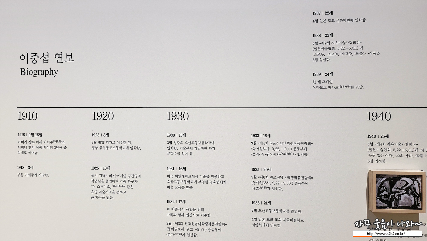 이번 이건희 틀별전 : 이중섭 전시회의 마지막 공간은 그의 연보와 평가로 전시되어 있습니다.