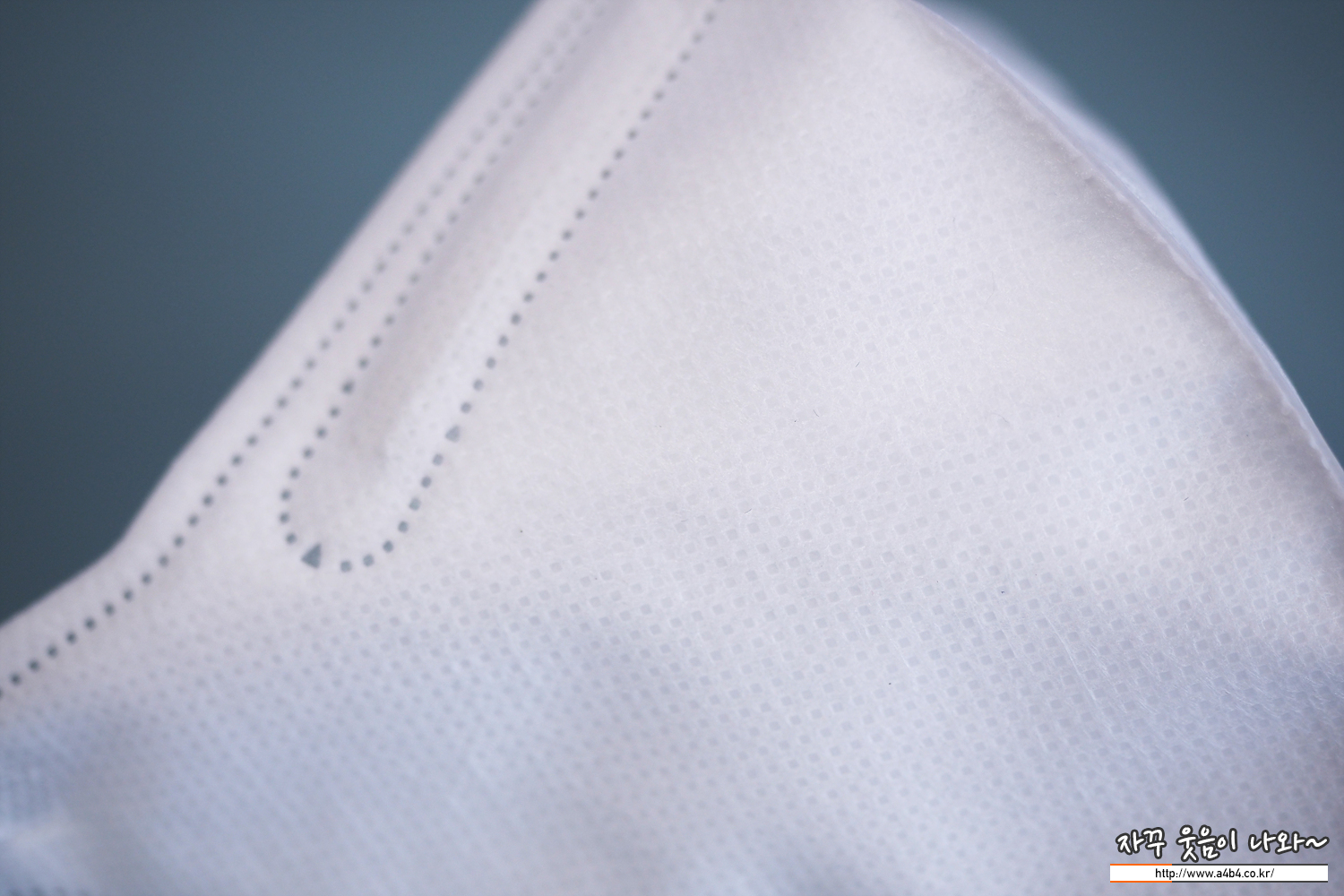 네츄럴케어 마스크 KF80은 매끈한 촉감의 겉감이 사용되었습니다. 얇고 소프트한 타입으로 착용감과 착용핏은 무난한 편입니다. 다만 마스크가 얇다 보니, 숨을 쉬면 마스크가 고정되지 않네요. (이 부분은 4/4 착용감에서 자세하게 리뷰합니다.) 케어황사마스크에 사용된 원자재와 부자재의 원산지는 국내산인지 수입산이 섞여 있는지 확인하지 못했습니다.