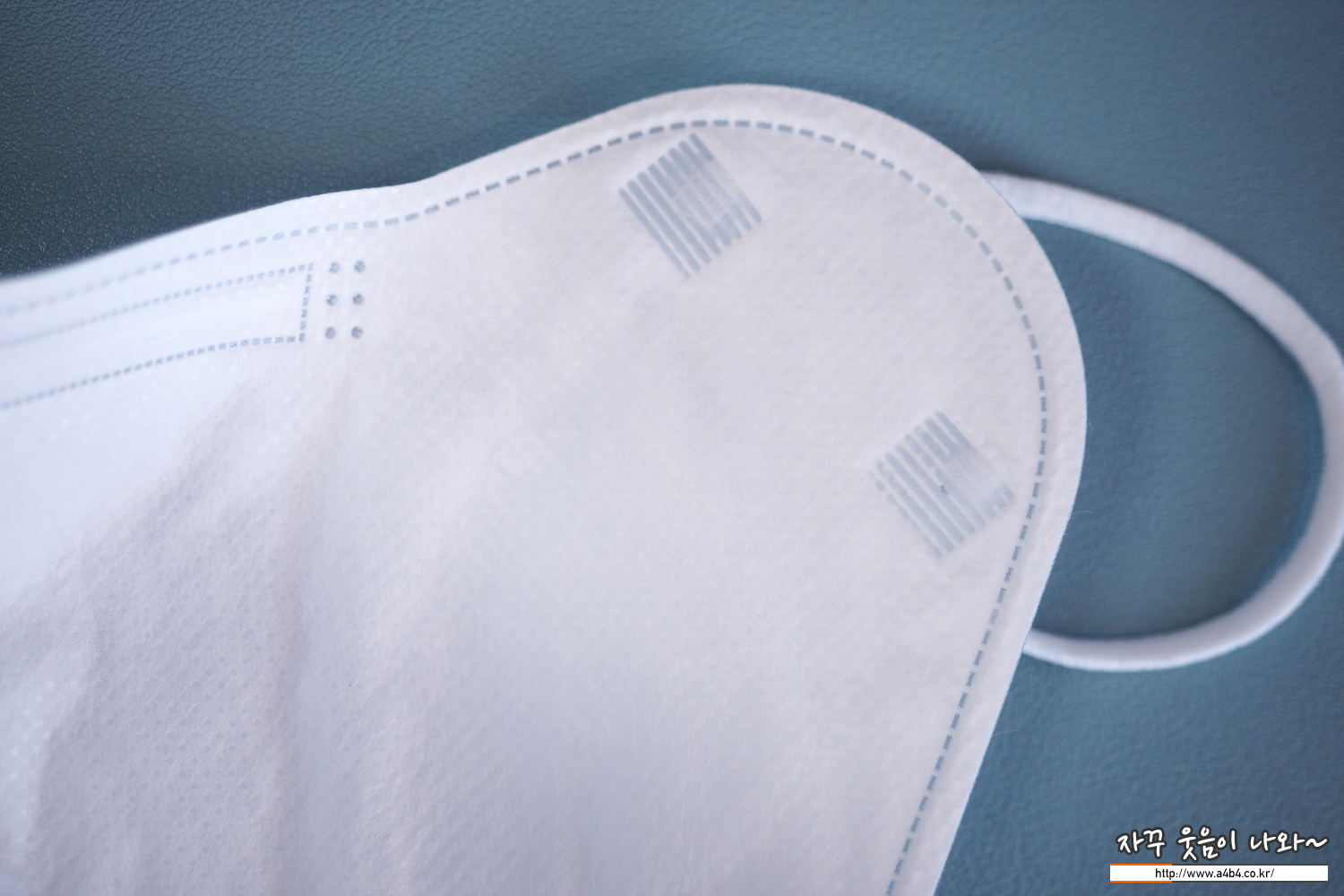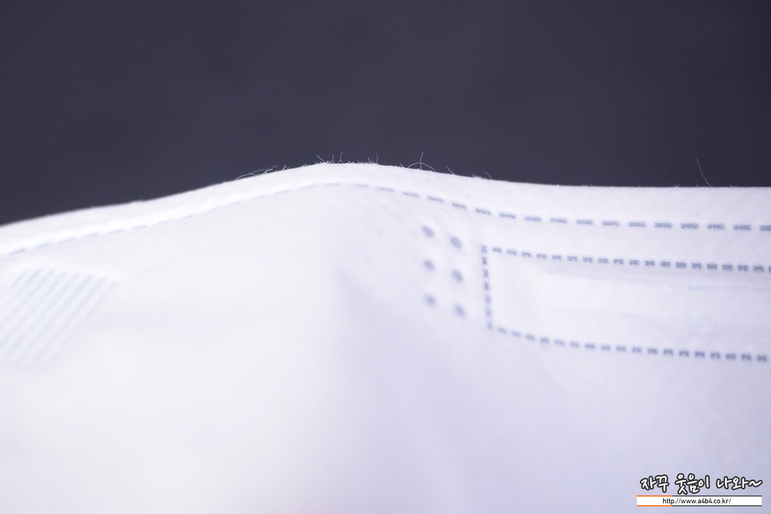 하이가드에어버드방역마스크 안감은 부드러운 감촉의 부직포가 안감으로 사용 되었습니다. 마스크 안감과 테두리로 보풀이 많이 일어나 있는데요. 장시간 사용해도 얼굴이나 입 주변이 가렵거나 간지러운 피부 트러블은 없었네요. 또한, 마스크 안쪽에서 약품 냄새도 나지 않았습니다.