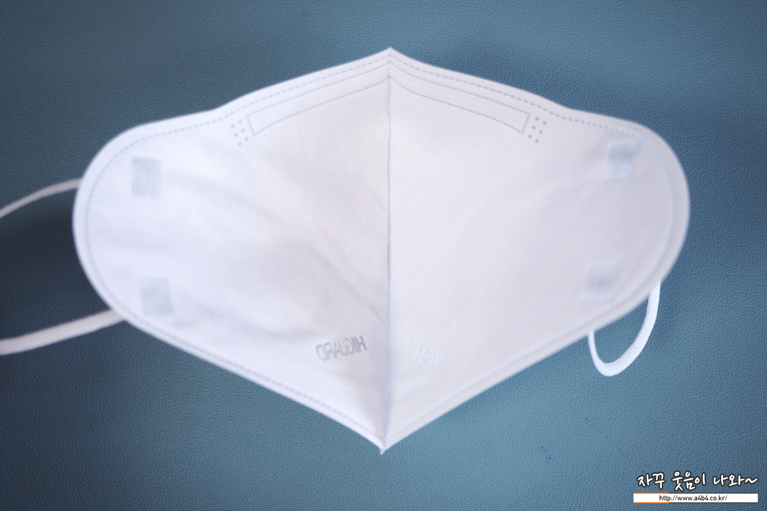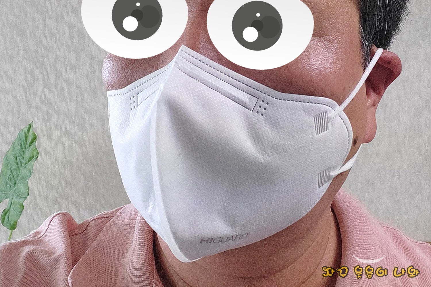 착용샷과 같이 마스크를 착용하구 숨을 쉬면 마스크가 쉽게 입쪽으로 딸려 옵니다. 그러면서 볼과 입에 안감 접촉이 발생합니다. 얇고 소프트한 타입의 마스크의 경우 이런 문제가 있는데요. 오늘 리뷰하는 하이가드 마스크는 좀 더 심하네요.