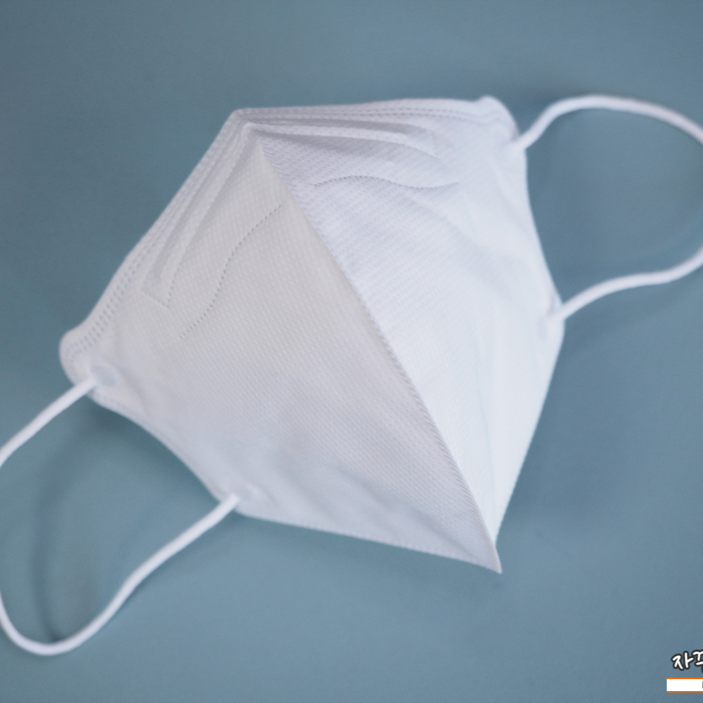 숲의향 새부리형 마스크 겉감은 드라이한 감촉의 부직포가 사용되었습니다. 4중구조 방식으로 약간 얇은 두께감과 소프트한 착용감을 보여주는 Kf94 마스크입니다. 다만 숨을 깊게 쉬어도 마스크가 심하게 안쪽으로 밀려 들어오지는 않습니다. 나름 안정적인 착용감을 보입니다.