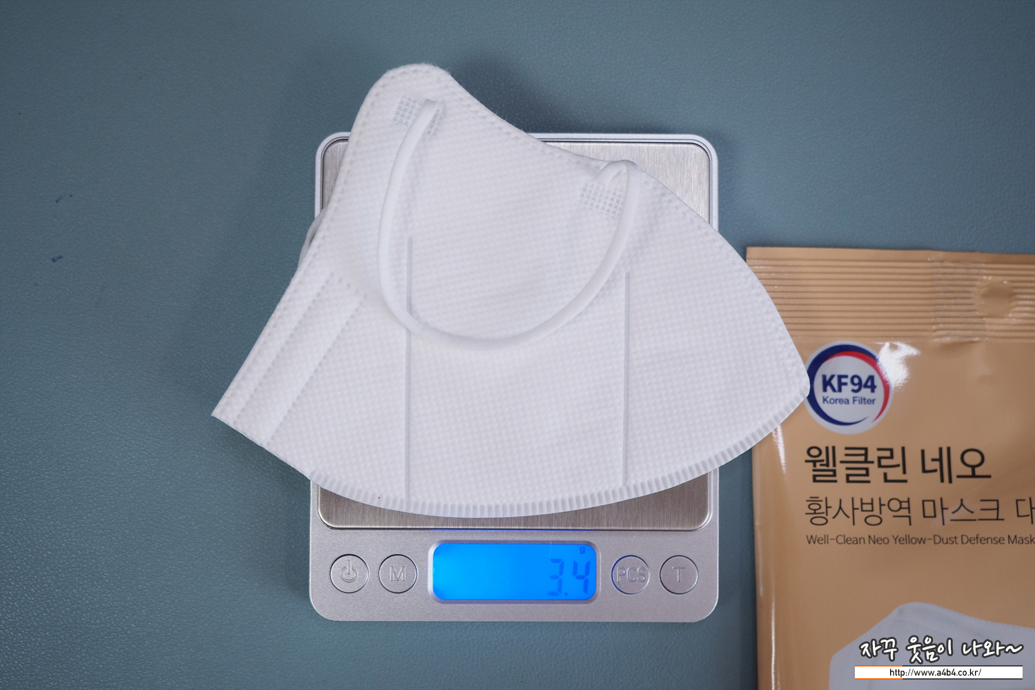 먼저 기본적인 마스크 디자인은 유사해 보입니다. 외형적인 차이는 웰클린 네오는 한 쪽에만 KF94 각인이 구형 웰클린 마스크는 양쪽에 각인이 있습니다. 또한 웰클린 네오 마스크의 패턴 처리가 저 강하게 처리되어 있습니다. 마스크 중량 또한 동일합니다.