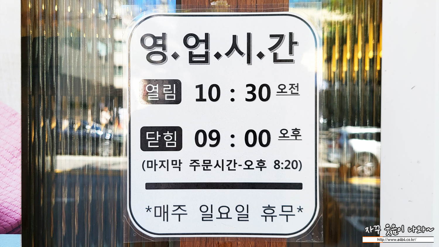 오전 10:30 ~ 오후 9:00까지 영업합니다. 라스트오더는 저녁 8:20 까지 가능하며, 송옥 대치점 휴일은 매주 일요일 입니다.
