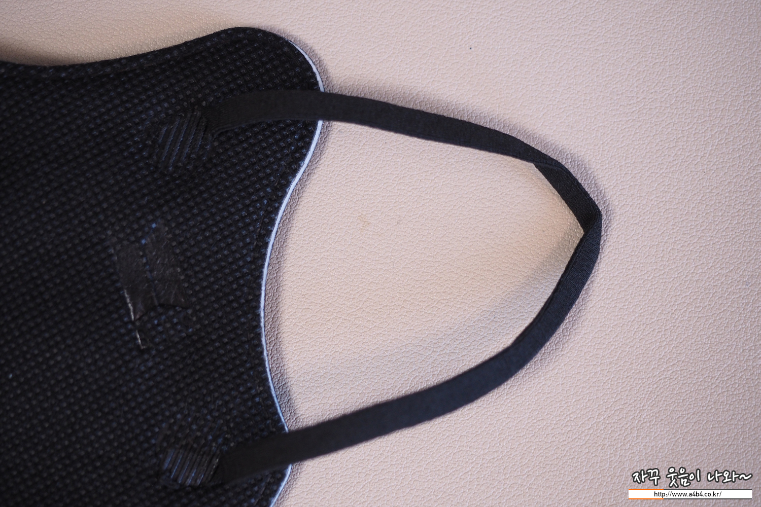 마스크 전면에는 고급 새부리형 마스크에서 많이 사용되는 납작한 디자인의 폴리에스터/폴리우레탄끈이 접착되어 있으며, 도부 마스크 BTS 이어밴드는 탄성은 강한 타입으로 짱짱한 착용감을 보입니다.
