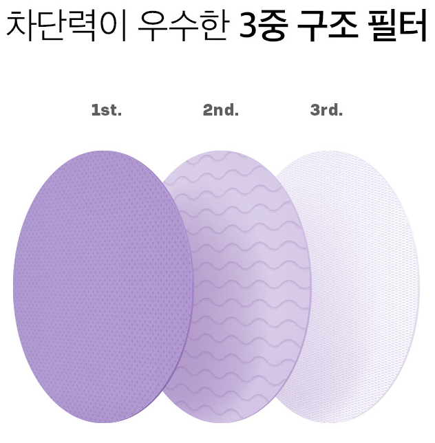 BTS 마스크 안감은 매끈한 촉감의 부직포가 사용되었습니다. 장시간 착용해도 안감에서 보풀이 일어나지 않으며, 볼이나 코, 입 주위가 가렵거나 간지러운 피부트러블도 없습니다. 다만 개봉 후 바로 착용하면 약한 약품냄새가 나네요.