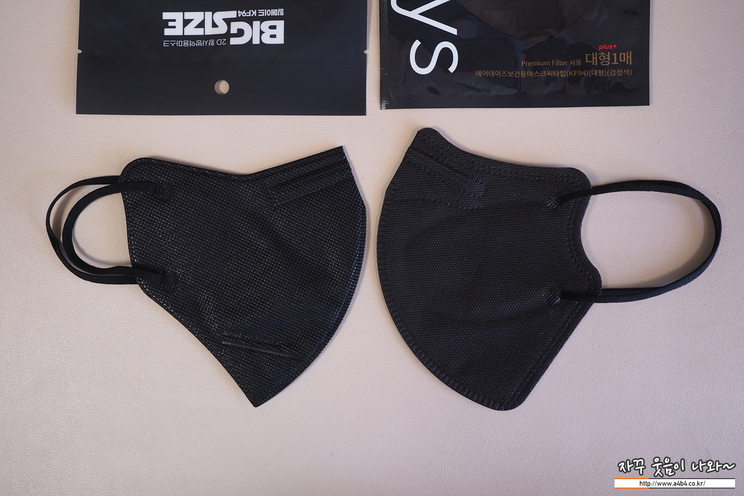 두 제품을 비교하는 부직포 면적은 동일하고 오히려 귀걸이끈 부분은 더 짧은 상태네요. 새로 만든 빅사이즈 마스크가 아닌 기존 대형사이즈 마스크 패키지명만 변경한 것으로 생각됩니다. T.T